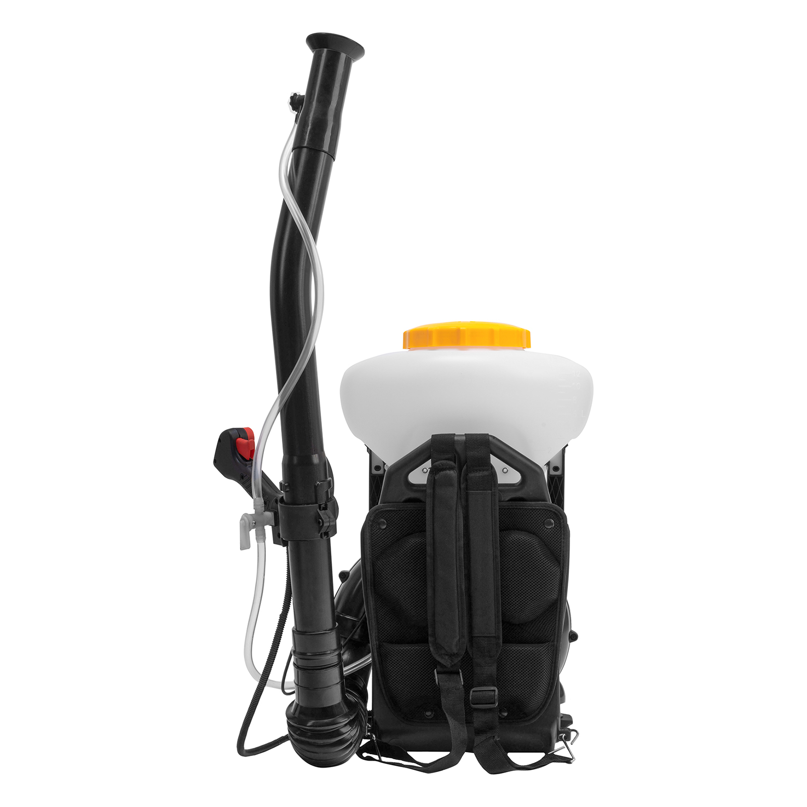 Бензиновый опрыскиватель Denzel GS-43 65301 с двигателем объемом 43 см3 и баком на 14 л предназначен для распыления жидких, порошковых и гранулированных веществ. Используется для ухода за растениями: обработки от насекомых и вредителей, внесения подкормки, профилактики и лечения заболеваний. Двигатель мощностью 2,5 л.с. обеспечивает дальность распыления до 13 м, поэтому опрыскиватель подходит для обработки участков большой площади. Также он может работать в режиме воздуходувки, позволяя убирать с дорожек опавшую листву и свежевыпавший снег.