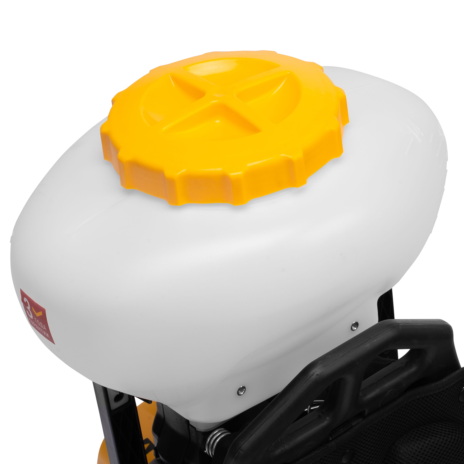 - Снижение нагрузки на позвоночник — плечевые ремни равномерно распределяют вес опрыскивателя.
