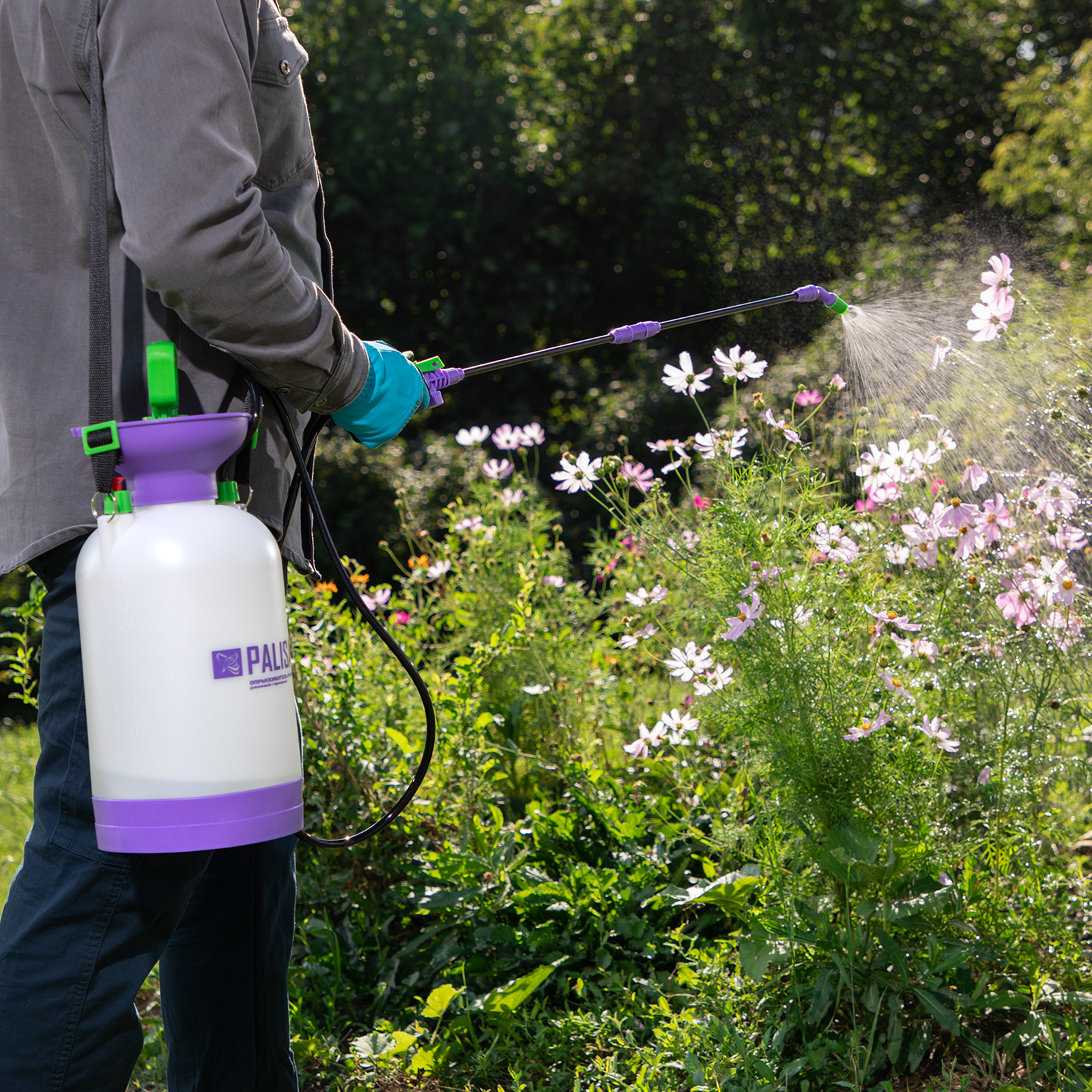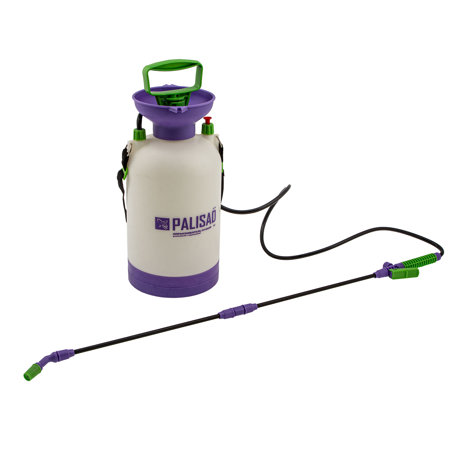 Опрыскиватель ручной усиленный с горловиной 5 л, с насосом, шлангом и разбрызгивателем Palisad