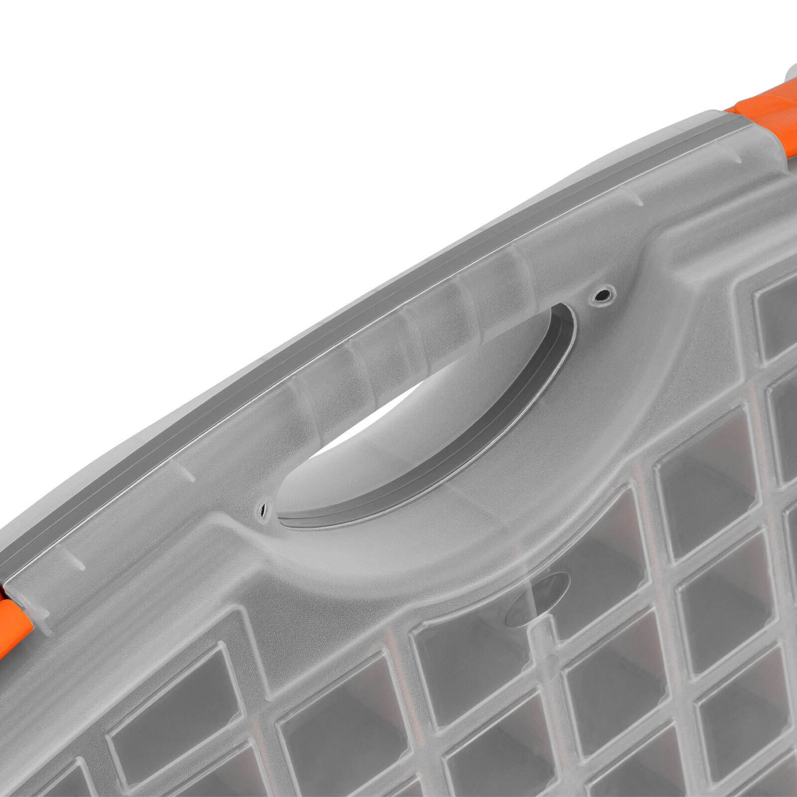- Защелки и ручка обеспечивают удобство транспортировки органайзера.