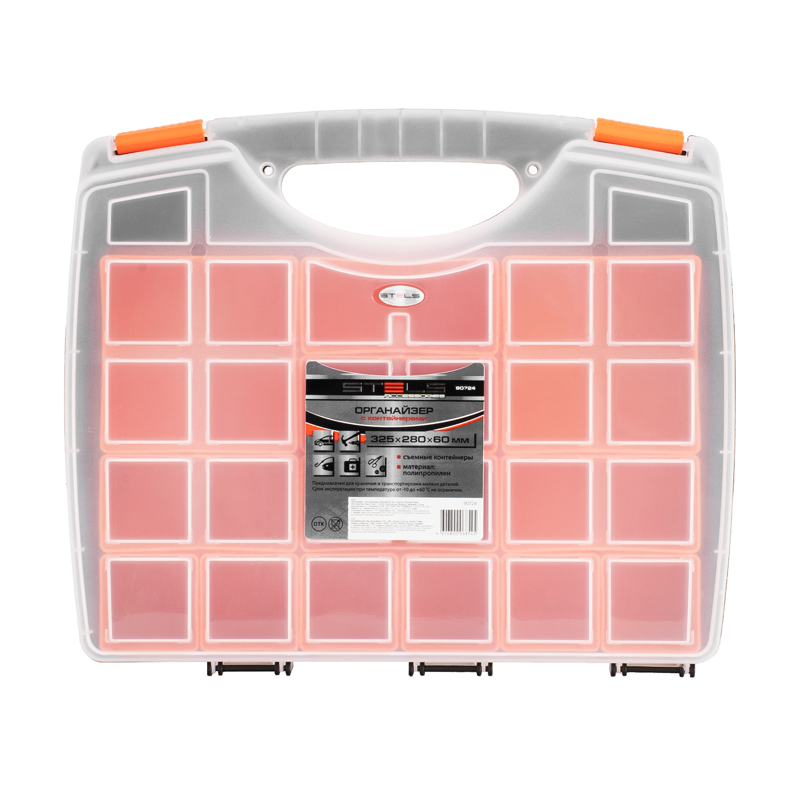 - Защелки и ручка обеспечивают удобство транспортировки органайзера.