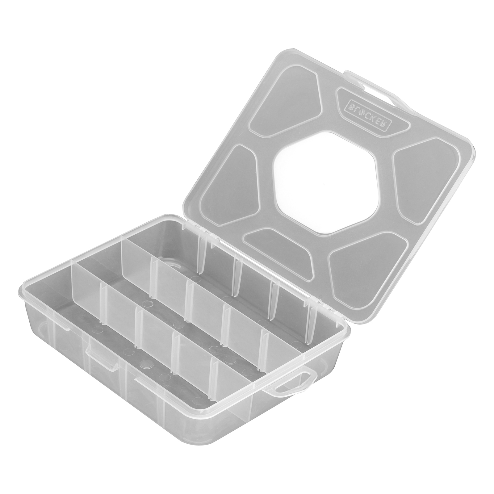 Универсальный малый органайзер Сибртех 90726 размером 190 х 160 х 45 мм, прозрачный матовый, используется для практичного хранения мелких предметов. Он подходит для распределения снастей, крепежа, хозяйственных мелочей и других предметов. Органайзер позволяет компактно расположить вещи в скрытых уголках квартиры: в шкафу, под кроватью и т.д.