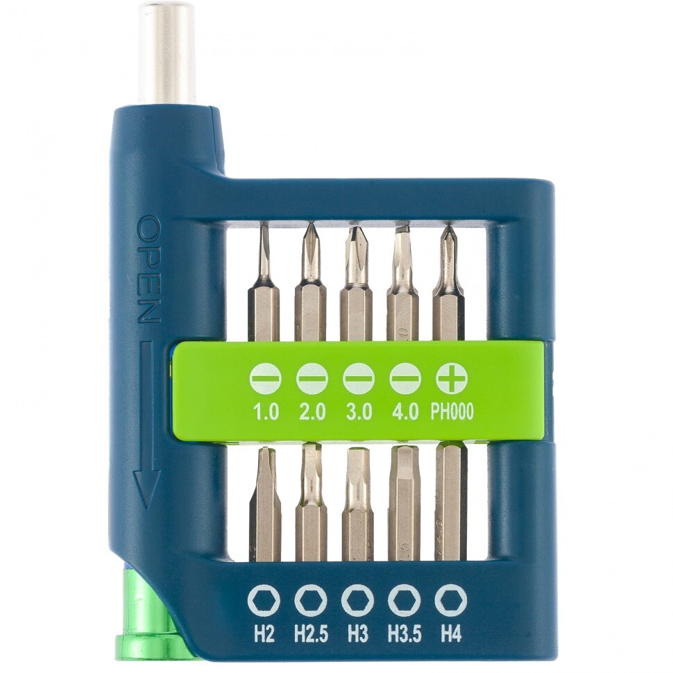 Пластиковый кейс - 1 штБиты 1/8": РН000, РН00, РН0, РН1, SL1, SL2, SL3, SL4, H2, H2.5, H3, H3.5, H4, T5, T6, T7, T8, T10, Pb0.8, Pb1.2 - 20 шт