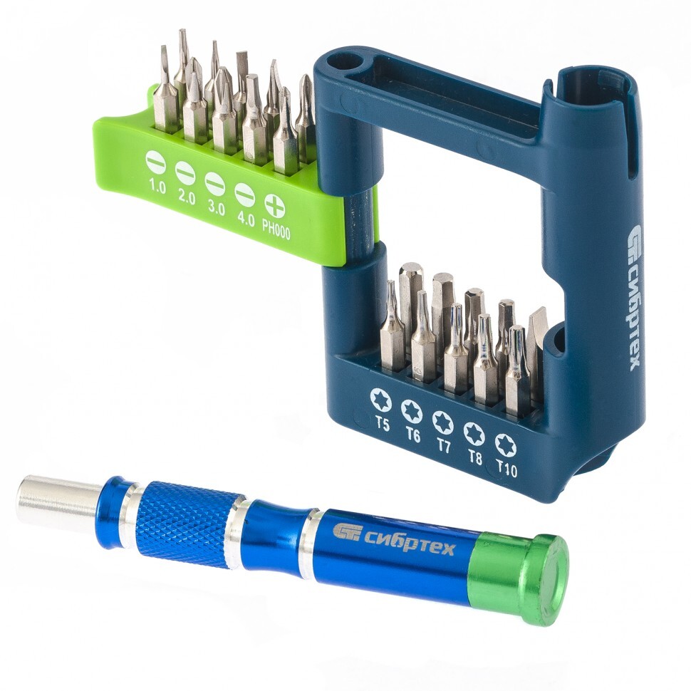 Отвертка для точных работ с набором бит, 21 шт, CrV Сибртех