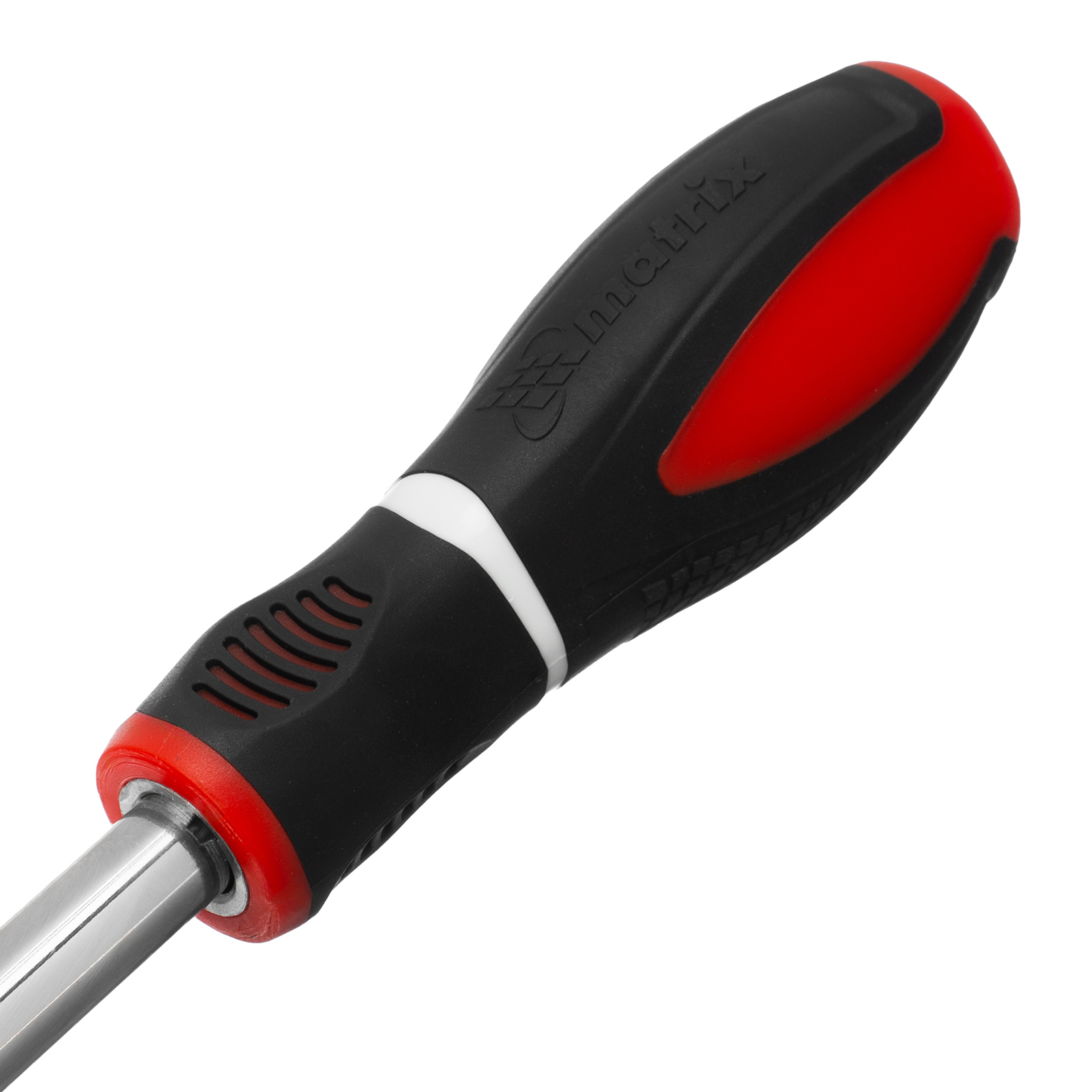 - Трехкомпонентная рукоятка с подпальцевыми выемками не скользит в руке, благодаря чему отверткой комфортно работать.