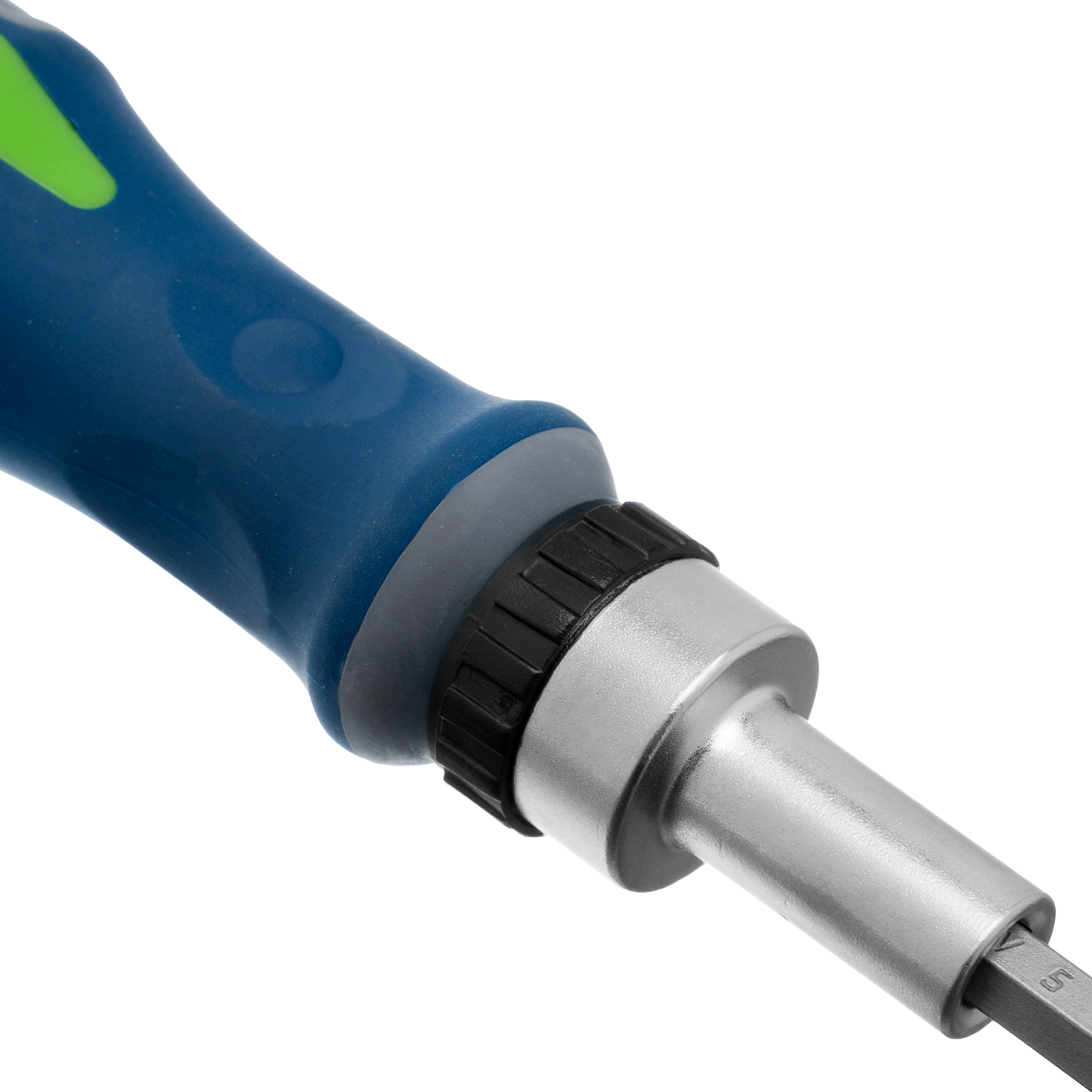 Отвертка реверсивная с набором бит и торцевых головок, 25 шт, CrV, чехол Сибртех