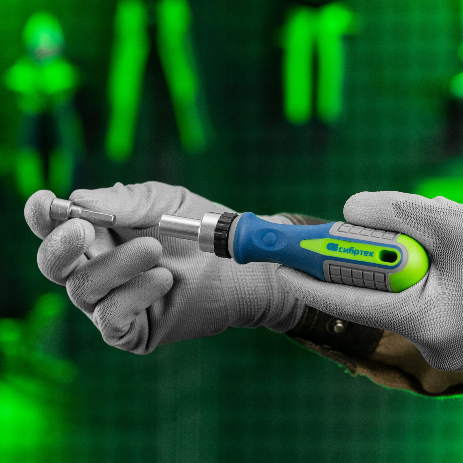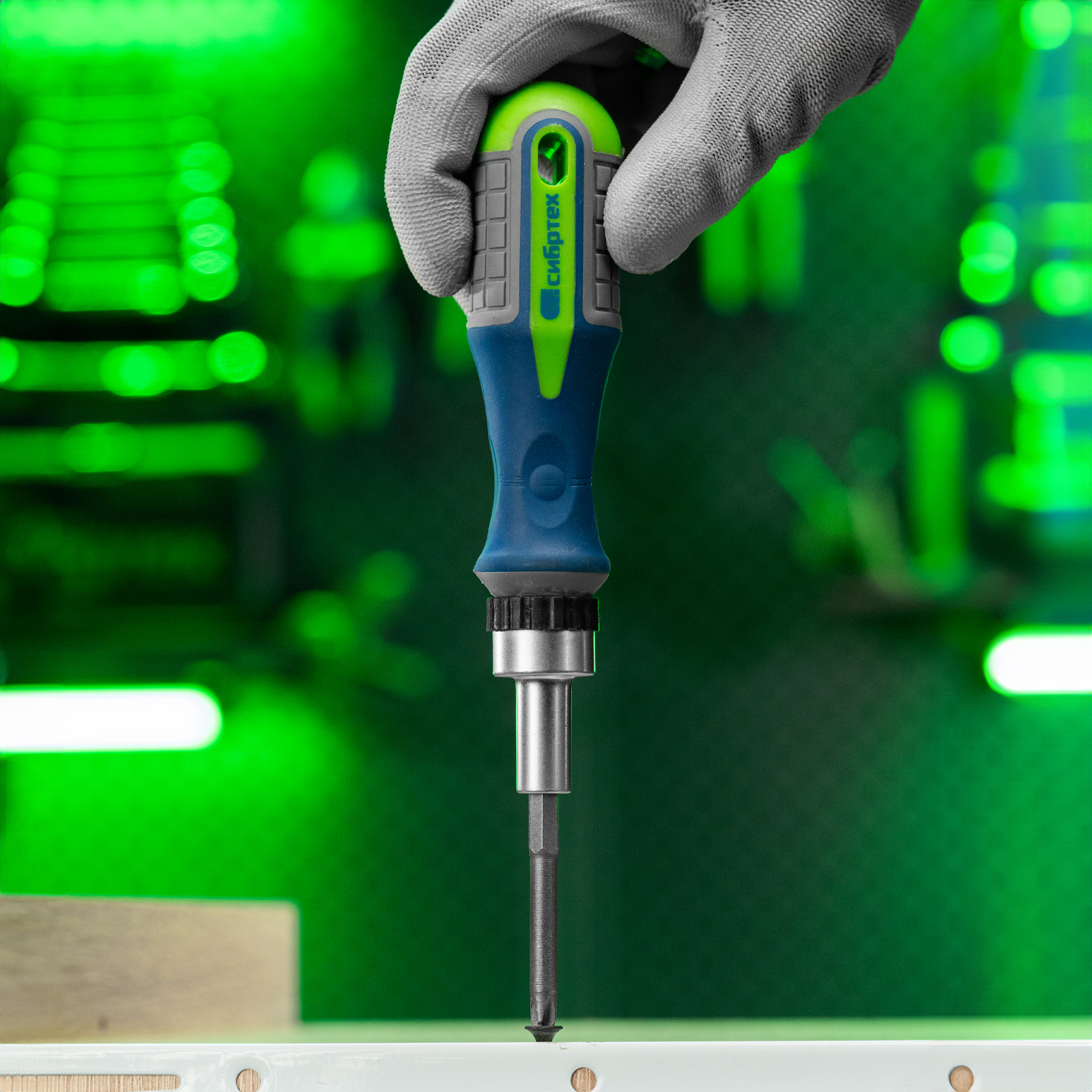 Реверсивная отвертка с набором бит и торцевых головок Сибртех 13376, 25 предметов из стали CrV в чехле, — это надежный инструмент для решения бытовых задач. С помощью сменных бит можно производить монтаж/демонтаж резьбовых соединений со шлицами SL, PH, PZ, TORX, HEX. А благодаря их удлиненной конструкции обеспечивается доступ к труднодоступным местам. Торцевые головки позволяют работать с болтами, гайками и другим крепежом.