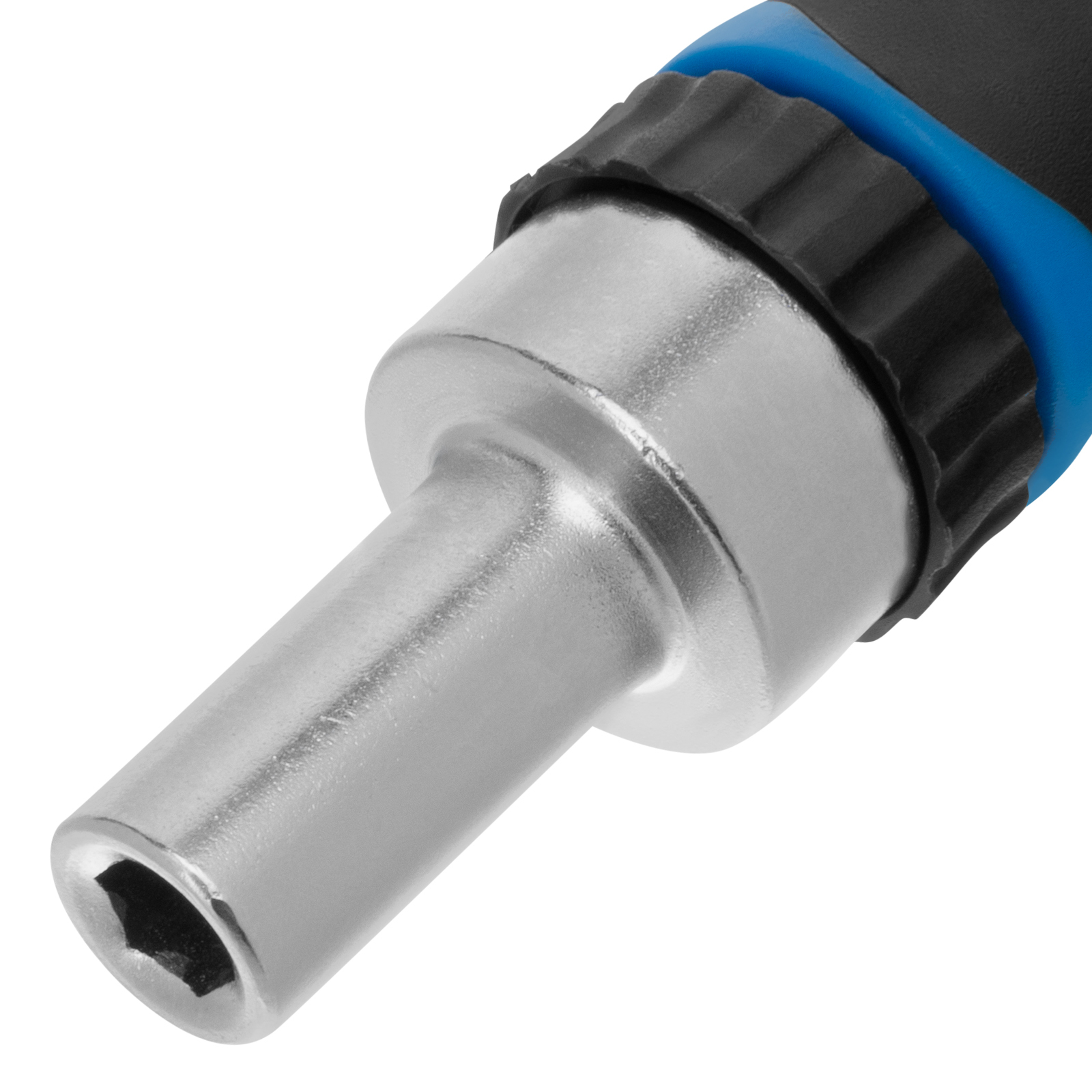 - Исключен риск слетания насадок в процессе работы — адаптер для торцевых головок размером 1/4 дюйма оснащен металлическим шариком-фиксатором.
