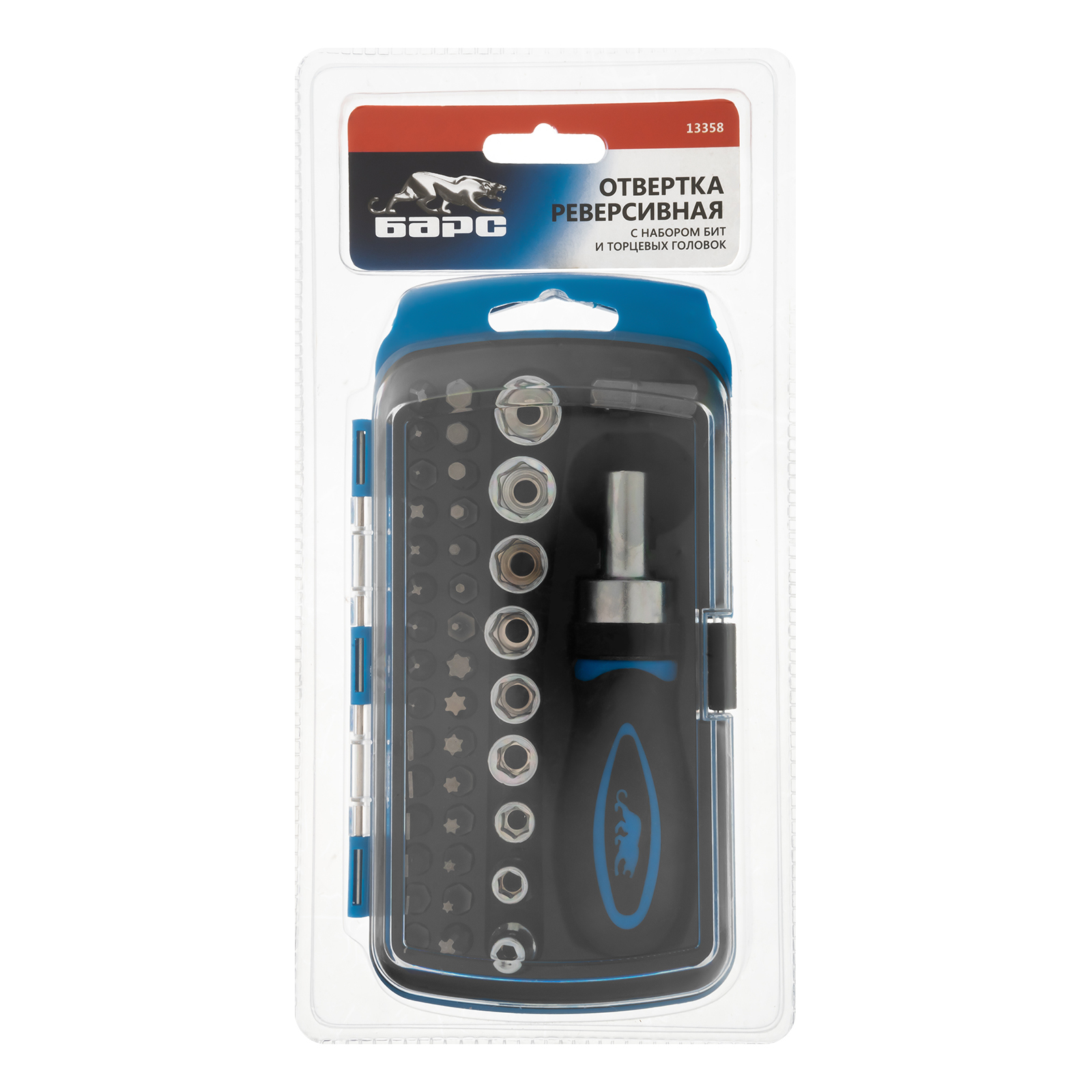 Отвертка реверсивная с набором бит и торцевыми головками, 41 шт Барс