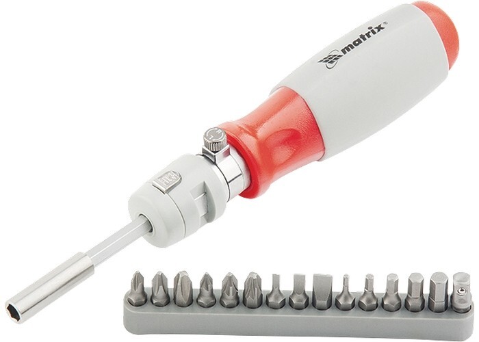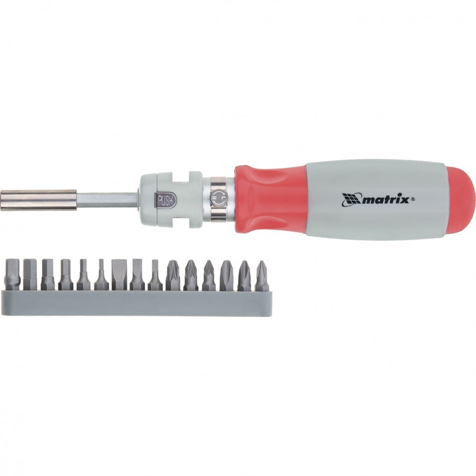 Отвертка реверсивная, телескопическая, силовой элемент под ключ, набор бит, CrV, 15 шт Matrix
