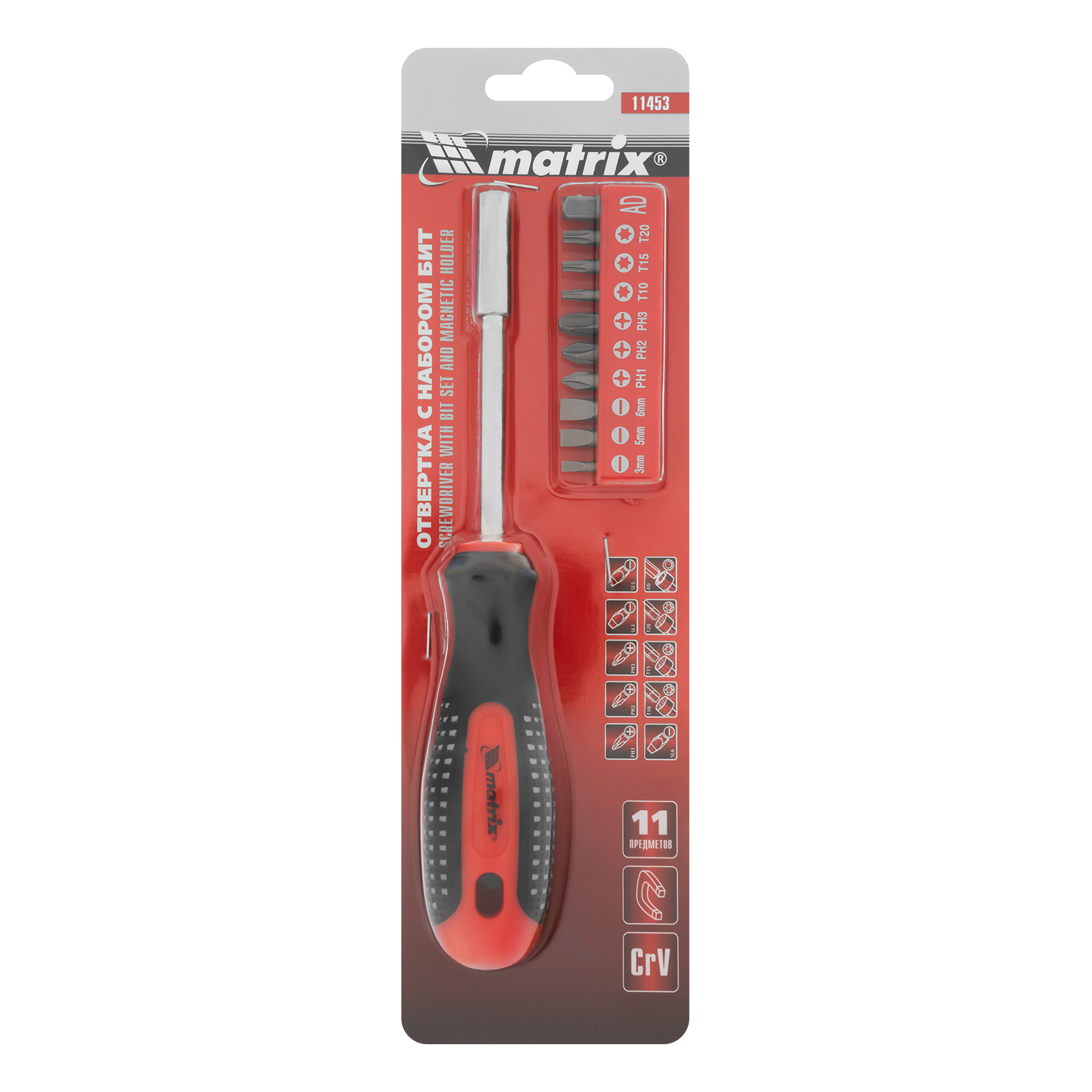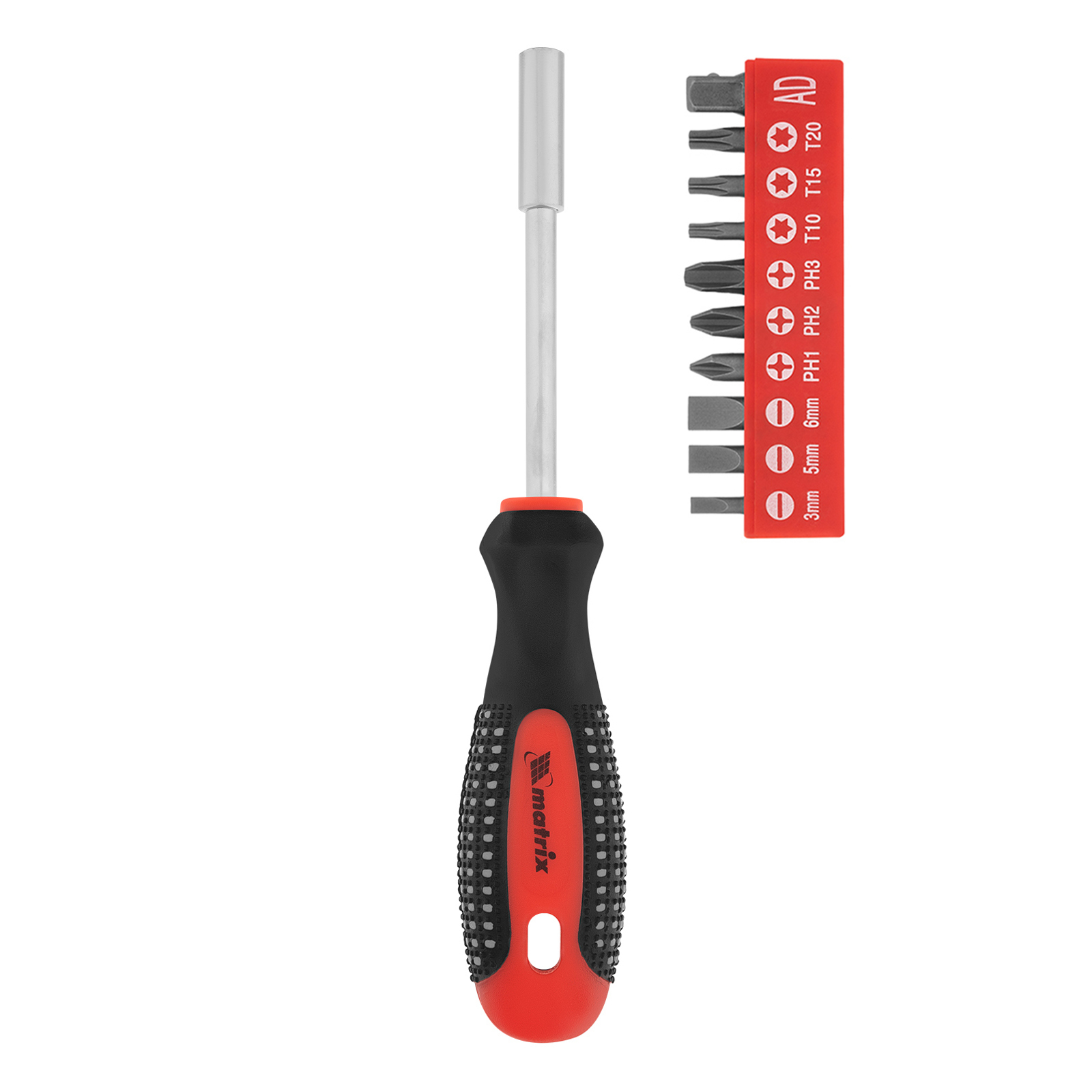 Отвертка с набором бит, 11 шт, Fusion, CrV, трехкомпонентная рукоятка "Anti slip" Matrix