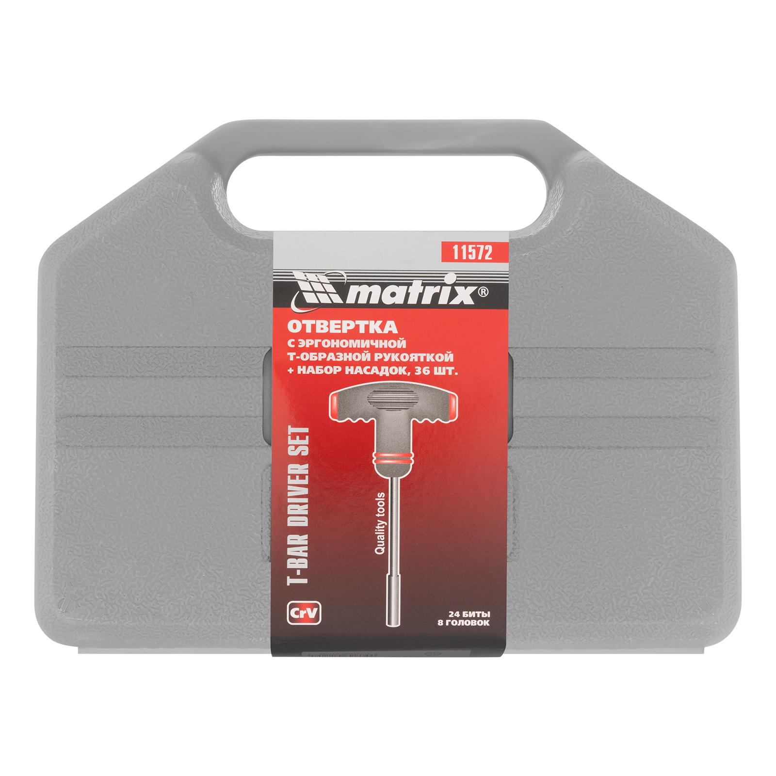 Отвертка с Т-образной эргономичной ручкой и набором насадок, 36 шт, CrV, пластиковый бокс Matrix