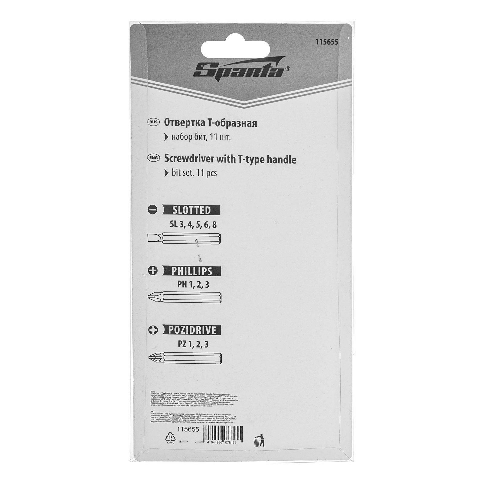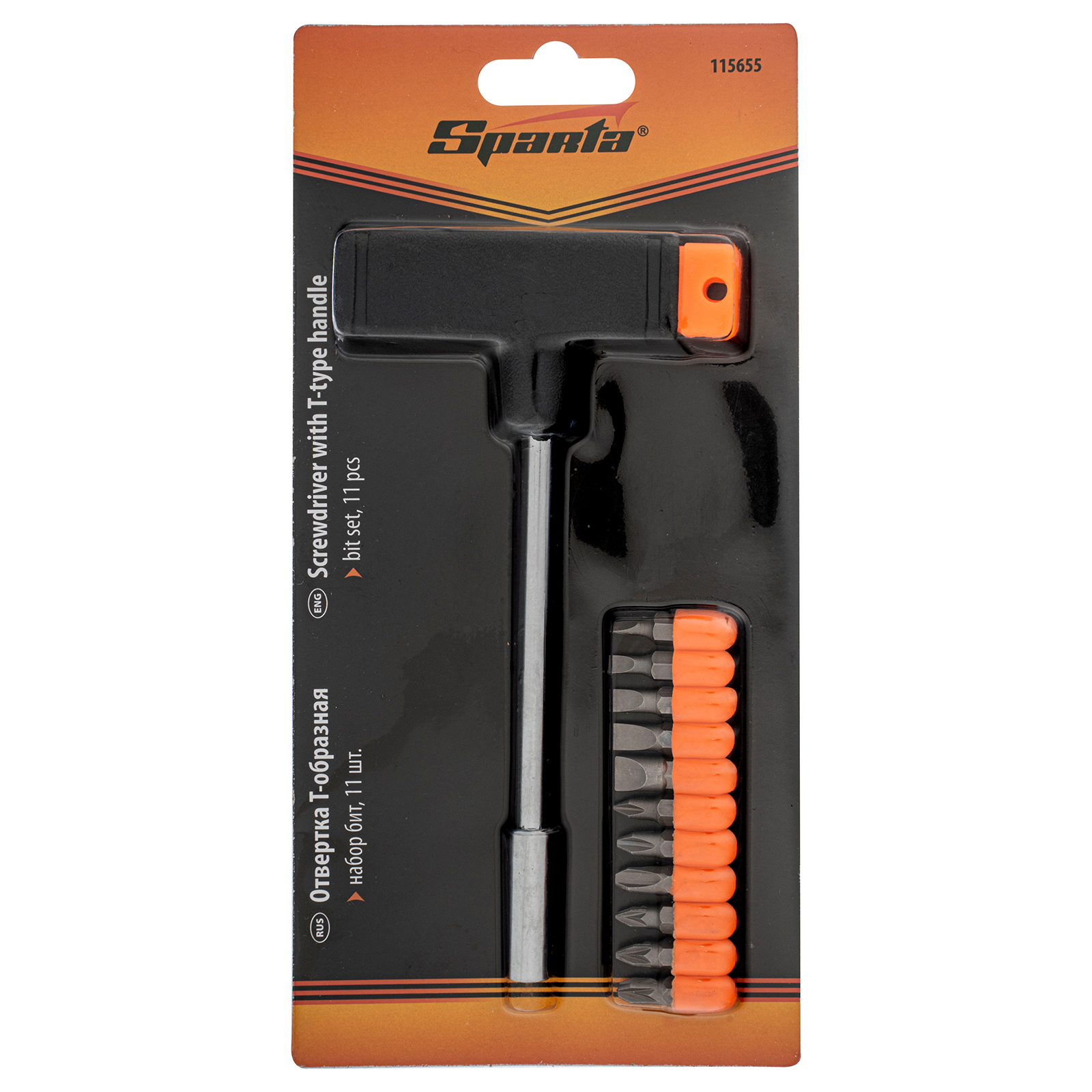 Отвертка с Т-образной ручкой, набор бит, 11 шт, Sparta