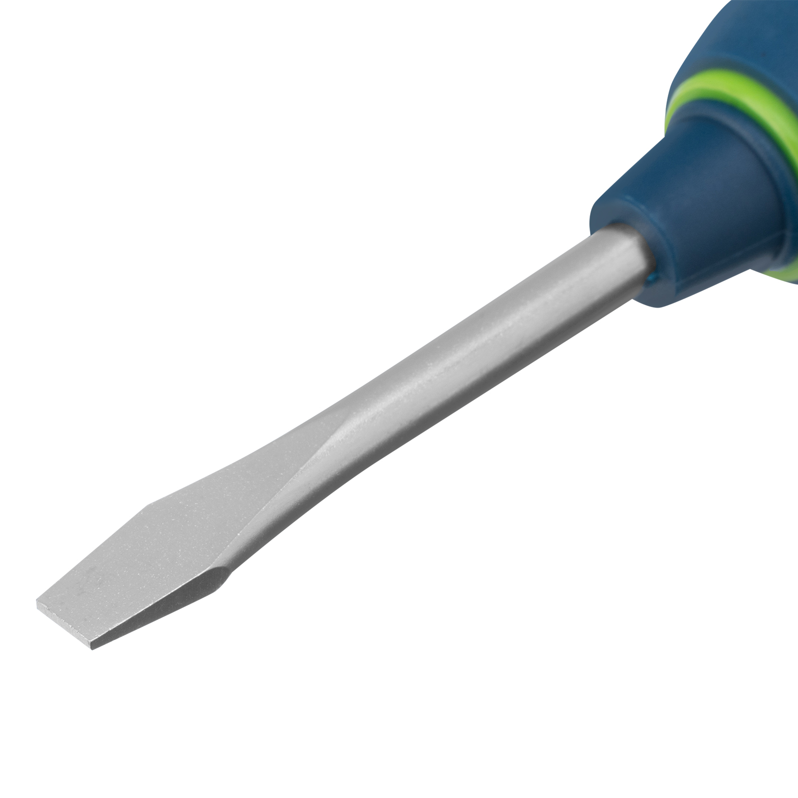 - За счет двухкомпонентной рукоятки отвертка удобно лежит в руке и не проскальзывает.