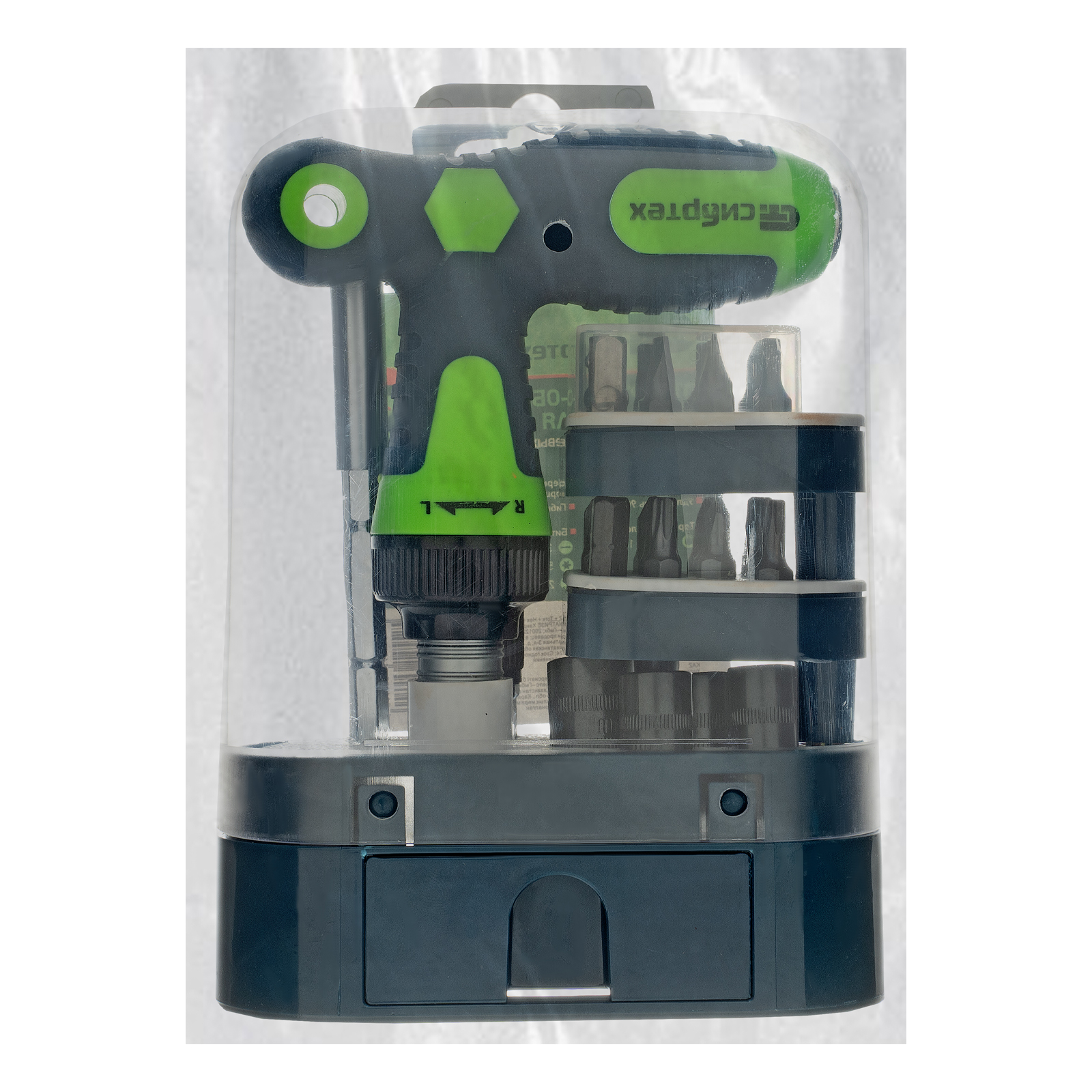 Отвертка Т-образная - 1 штГибкий удлинитель - 1 штТорцевые головки: 6, 7, 8, 9, 10, 11 - 6 штБиты: SL3, SL5, SL6, PH0, PH1, PH2, PZ2, PZ3, T5, T6, SPAN 6, H3, H4, H5, H6, TW 2, TW3, TA2, TA3, TT10, TT15, TT20, TT25, TT30 - 24 шт