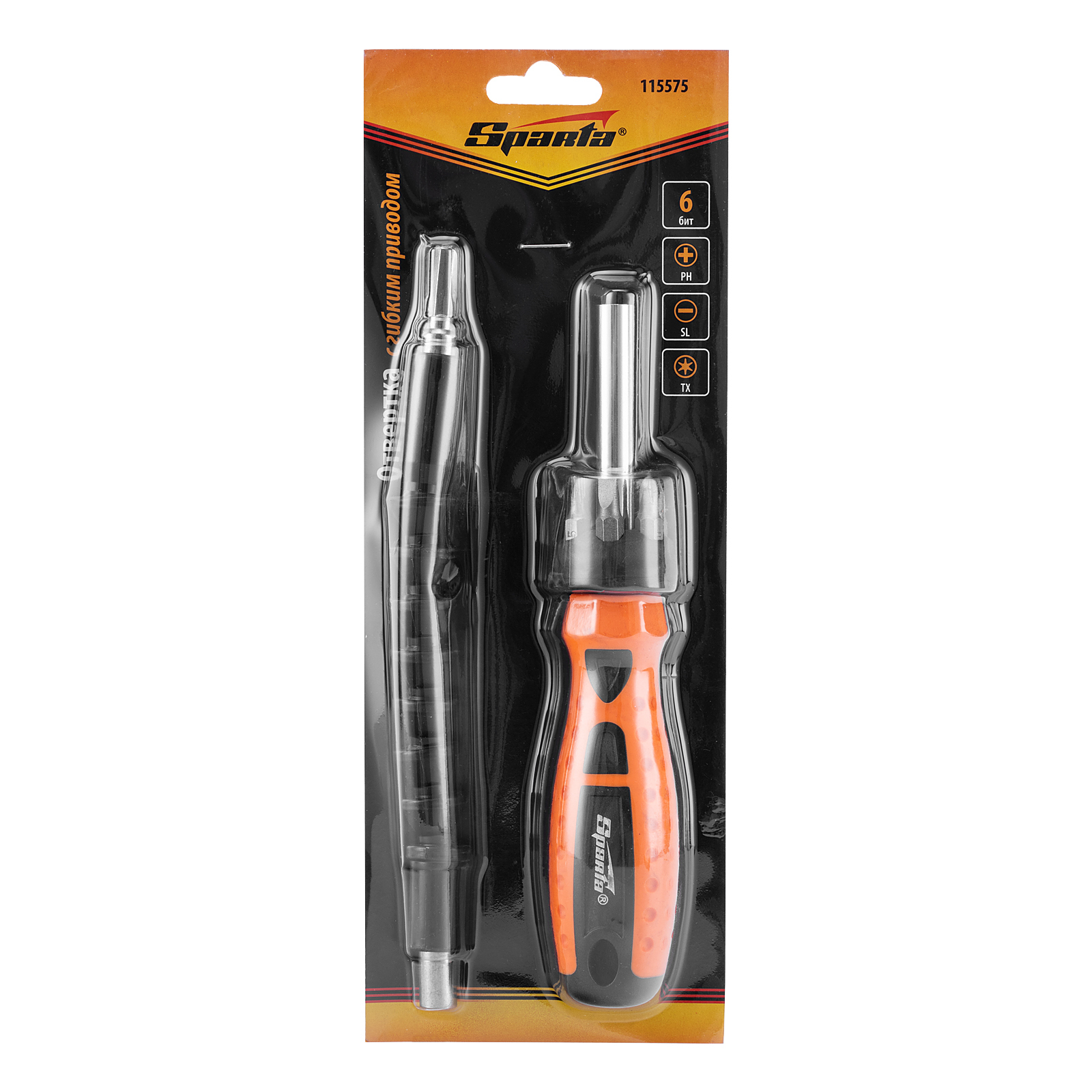 Отвертка телескопическая, набор бит, гибкий привод, 8 шт, Sparta