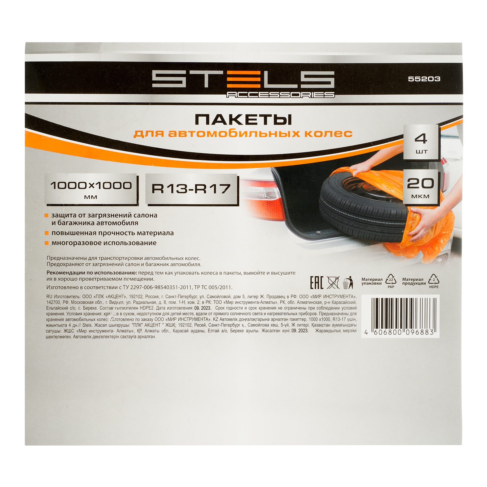 Пакеты для автомобильных колес, 1000х1000 мм, для R13-17, 4 шт. в комплекте Stels