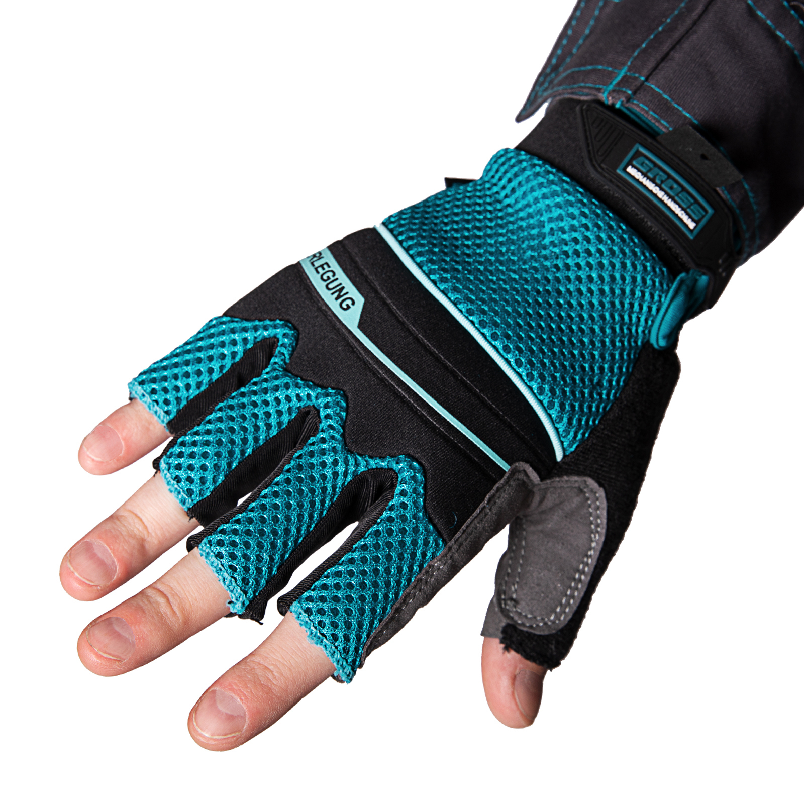 - Сетчатая вставка на тыльной стороне обеспечивает эластичность и воздухопроницаемость перчаток, поэтому руки в них не потеют.