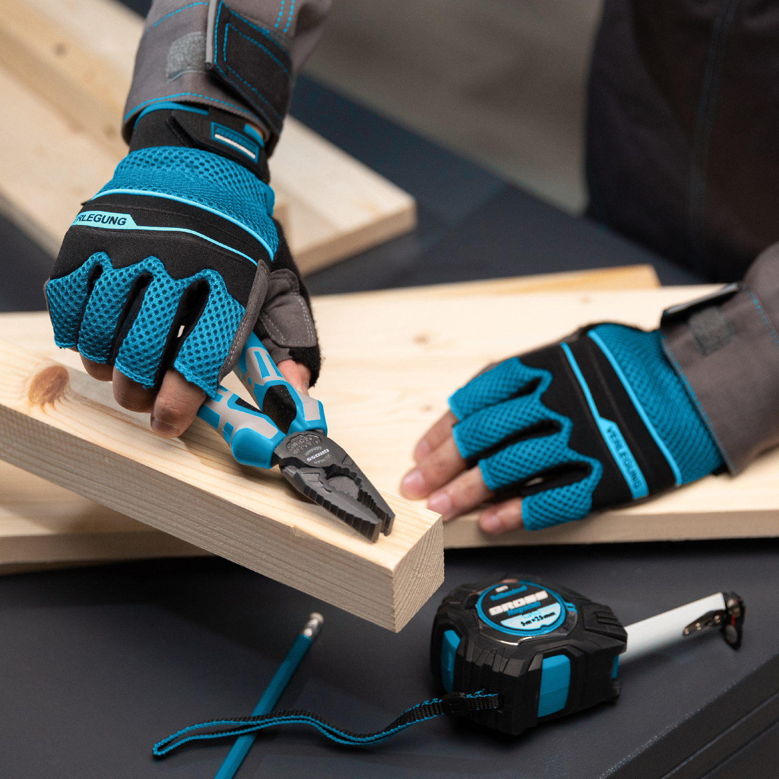 Комбинированные облегченные перчатки Gross AKTIV 90317 размера XL, с открытыми пальцами, — часть экипировки для проведения ремонтных, строительно-монтажных работ или занятий активными видами спорта. Пенный протектор защищает руки от повреждений и образования мозолей. Открытые пальцы облегчают манипуляции с мелкими предметами. Перчатки имеют анатомический крой, плотно облегают кисти рук и не сковывают движения.
