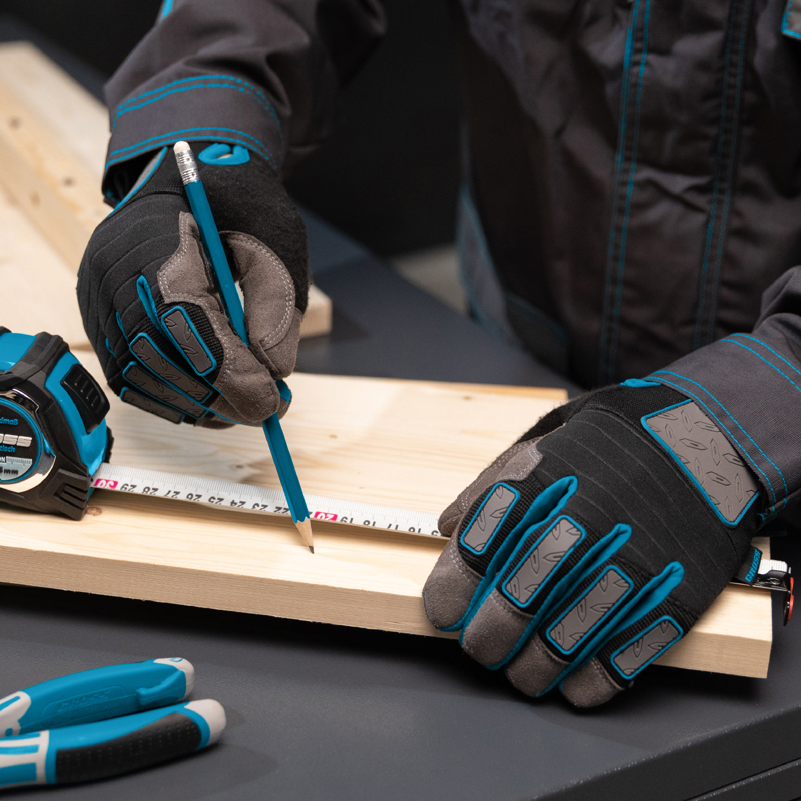 - Комфорт во время работы — в области суставов пальцев имеются воздухопроницаемые неопреновые прокладки, поэтому руки в перчатках не потеют.
