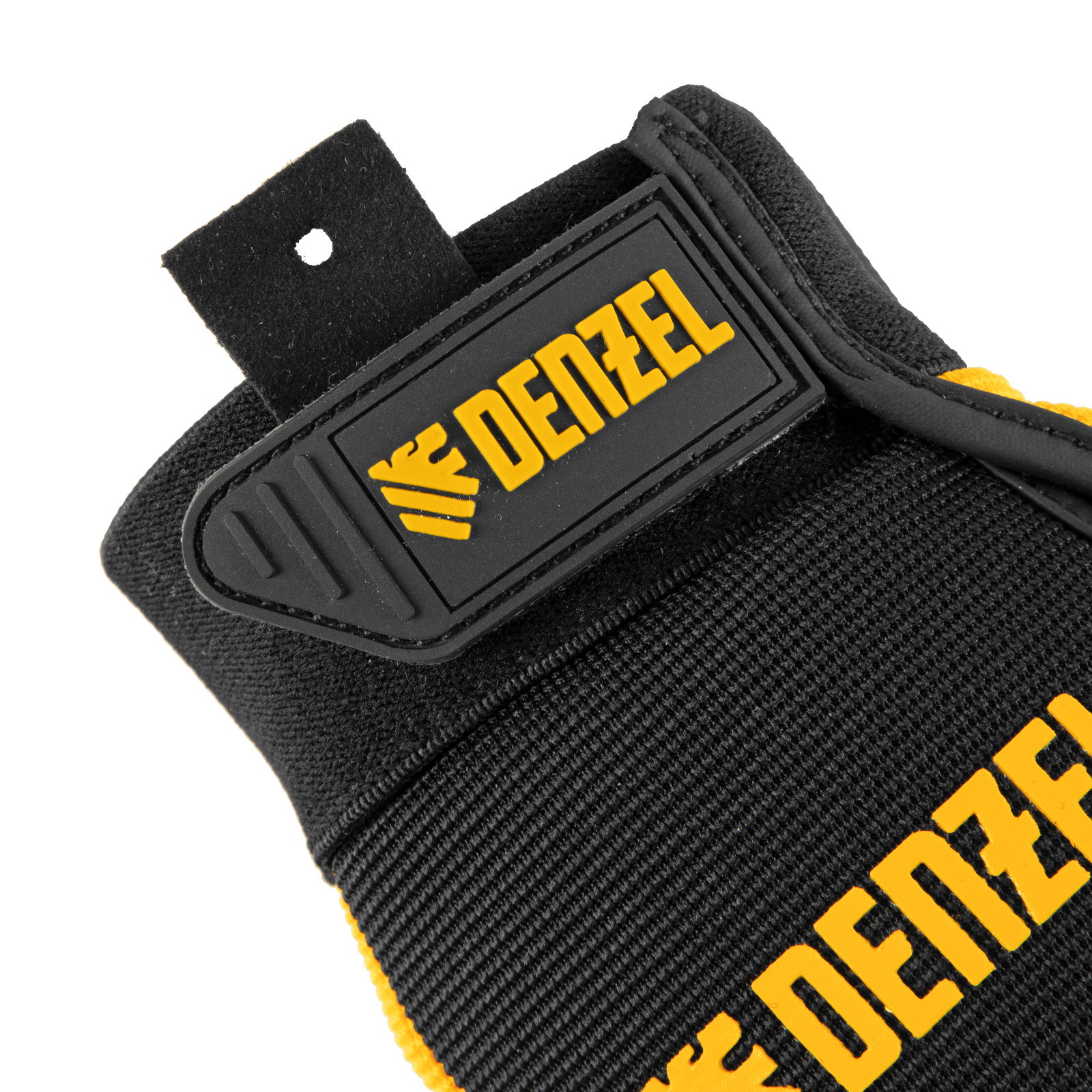 <p>Универсальные усиленные перчатки Denzel 67991 размера 10 используются для работы со слесарным инструментом. Надежно защищают кожу рук от царапин и мозолей. Пригодятся частному мастеру и профессионалу в мастерской, дома или в гараже.</p><h2>Преимущества</h2><ul><li>Износостойкость — перчатки устойчивы к истиранию благодаря прочному материалу (сочетание полиэстера, спандекса, полиамида, нейлона, полиуретана и поливинилхлорида).</li><li>Дополнительная защита — в местах, испытывающих наибольшее трение, имеются специальные накладки.</li><li>Работа с тачскрином — в перчатках можно нажимать на сенсорный экран, их не нужно снимать для ответа на звонок или сообщение.</li><li>Плотная посадка — манжеты на «липучках» обеспечивают надежную фиксацию.</li><li>Комфортная эксплуатация — перчатки анатомического кроя плотно облегают кисти рук и не стесняют движения пальцев.</li></ul>