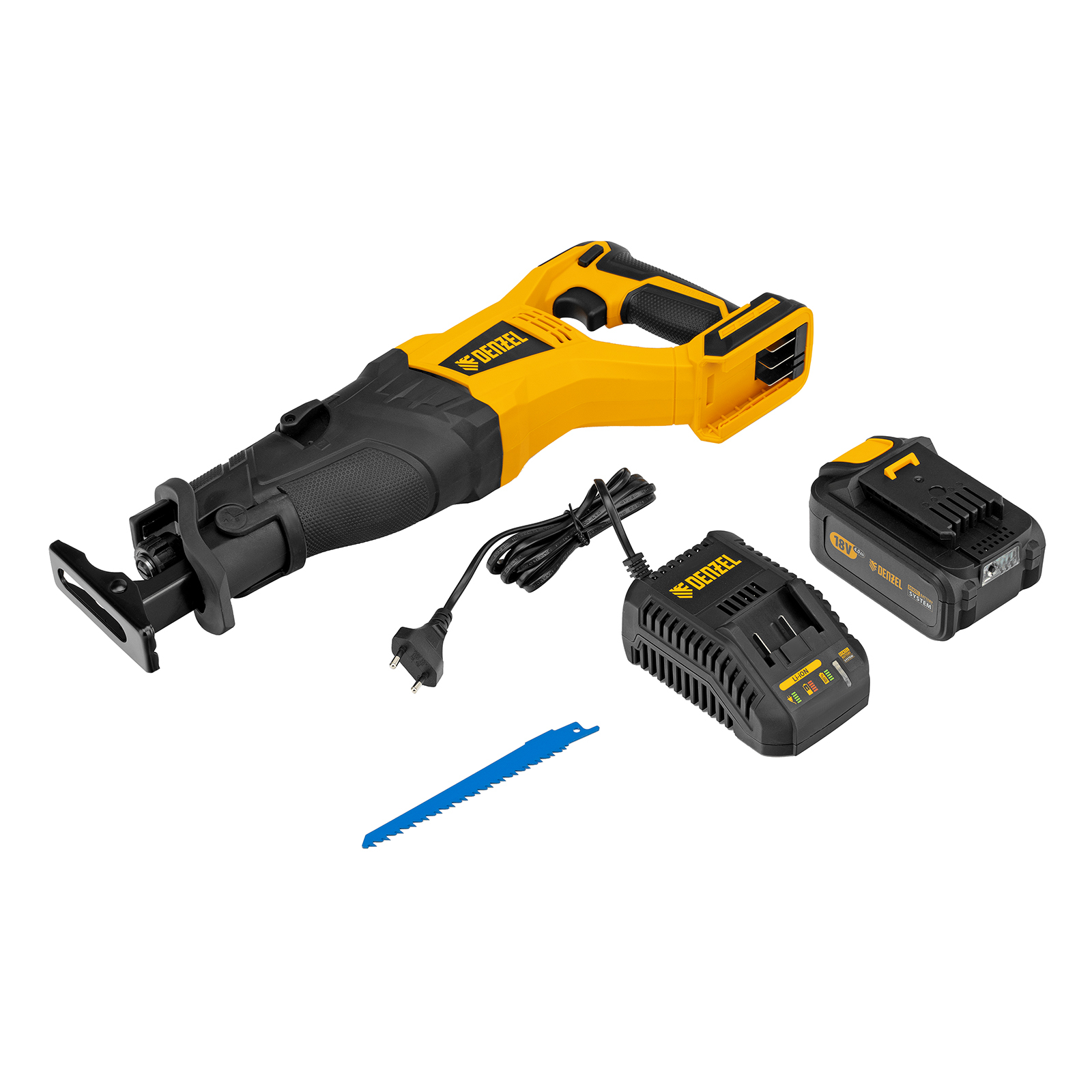 Сабельная пила - 1 штПильное полотно по дереву - 1 штБатарея аккумуляторная - 1 штЗарядное устройство - 1 штРуководство по эксплуатации с гарантийным талоном - 1 шт