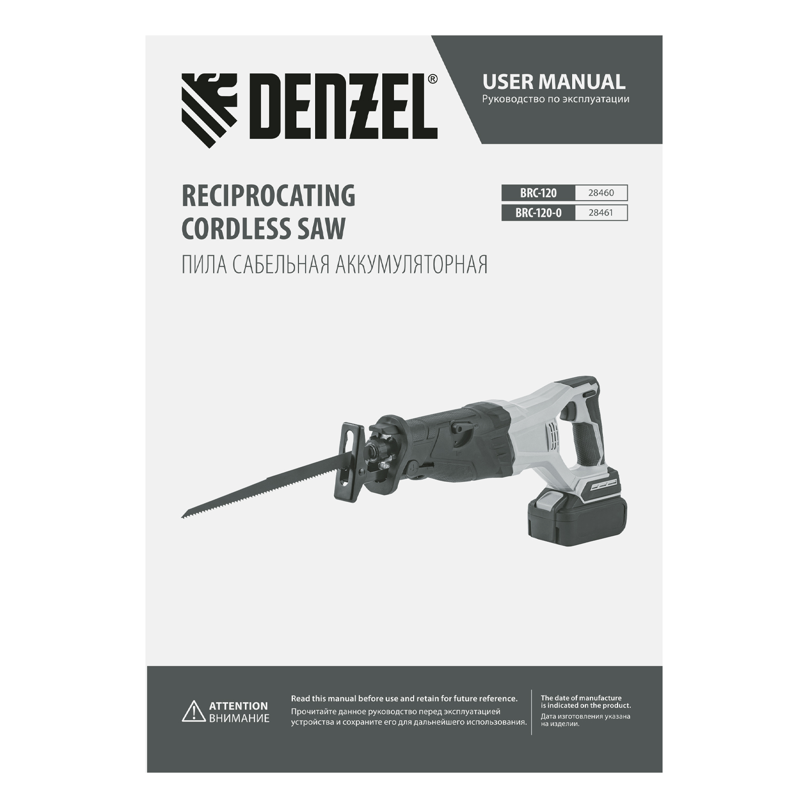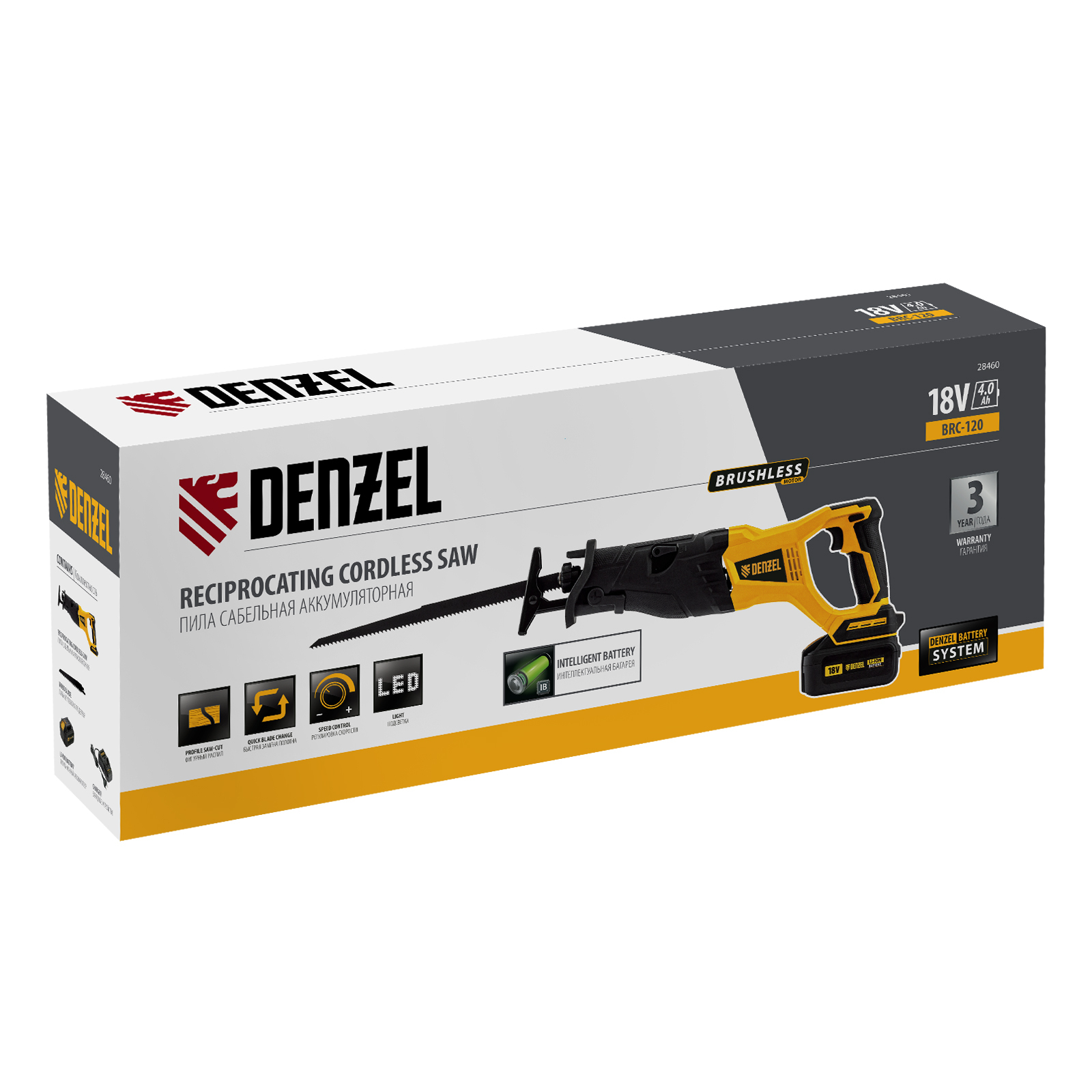 Пила сабельная аккумуляторная бесщет BRC-120, 18В Li-Ion Denzel