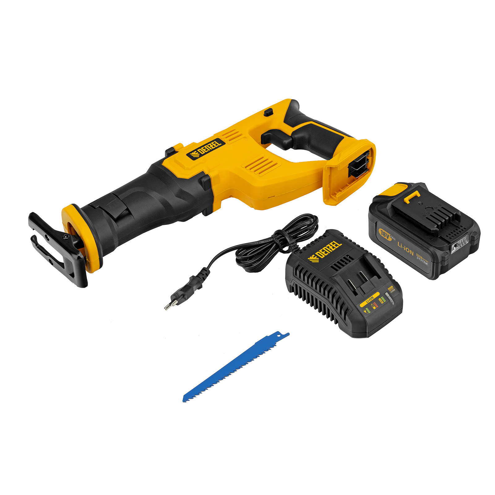 Сабельная пила - 1 штПильное полотно по дереву - 1 штБатарея аккумуляторная - 1 штЗарядное устройство - 1 штРуководство по эксплуатации с гарантийным талоном - 1 шт