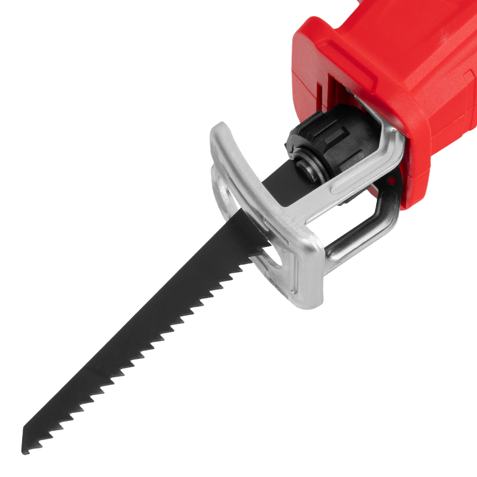 Пила сабельная аккумуляторная - 1 штА-образный упор - 1штАккумуляторная батарея - 1 штЗарядное устройство - 1 штПолотно пильное по дереву - 1 штПолотно пильное по металлу - 1 штРуководство по эксплуатации с гарантийным талоном - 1 шт