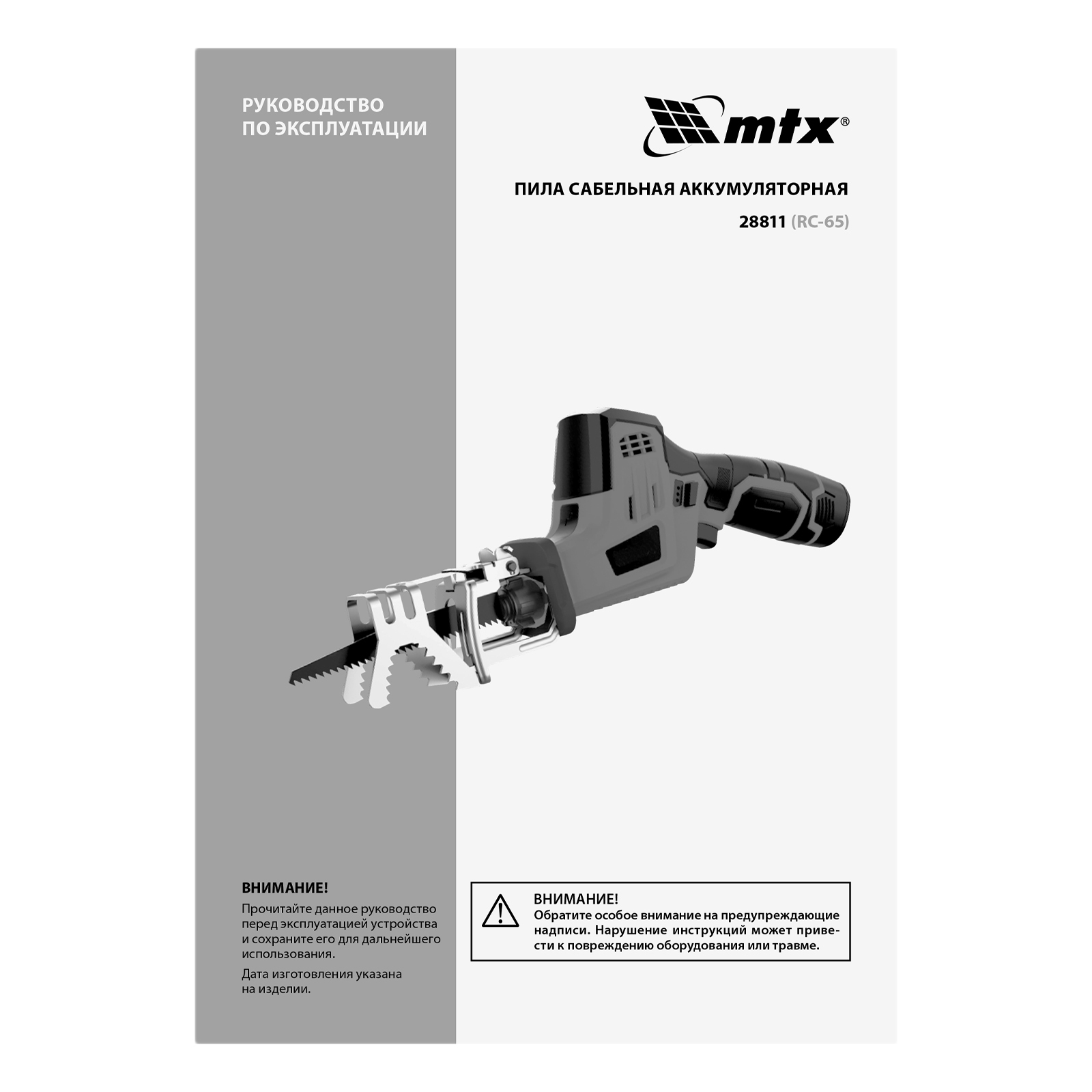 Пила сабельная аккумуляторная RС-65, Li-Ion, 12 В MTX
