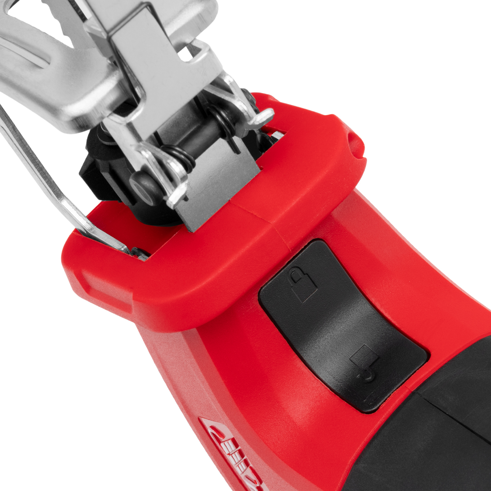 - Комфортная эксплуатация — А-образный упор служит для стабилизации инструмента и обеспечивает ровный рез, обрезиненная рукоятка поглощает вибрации.
