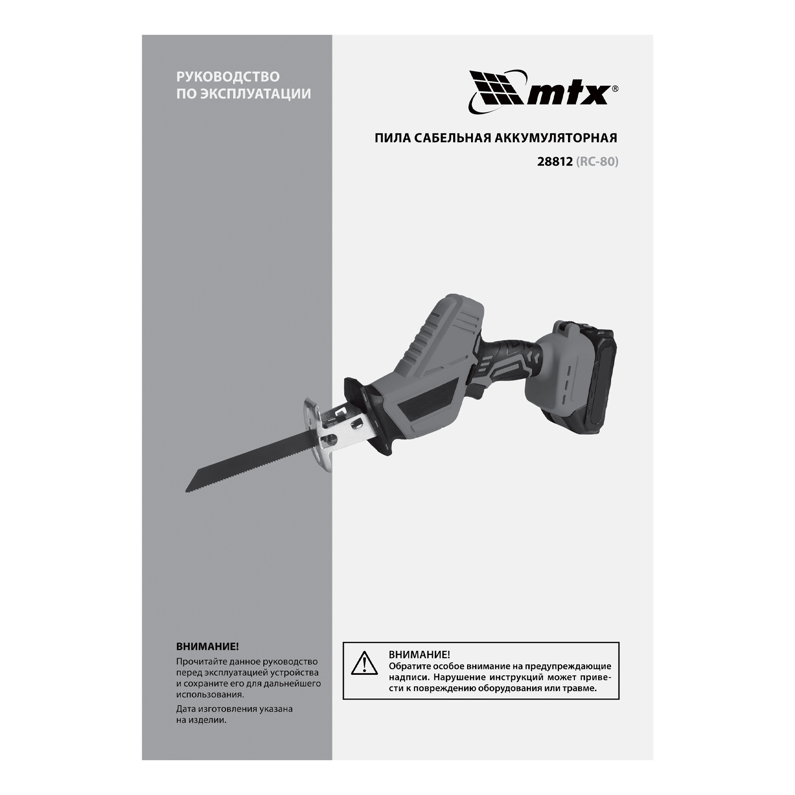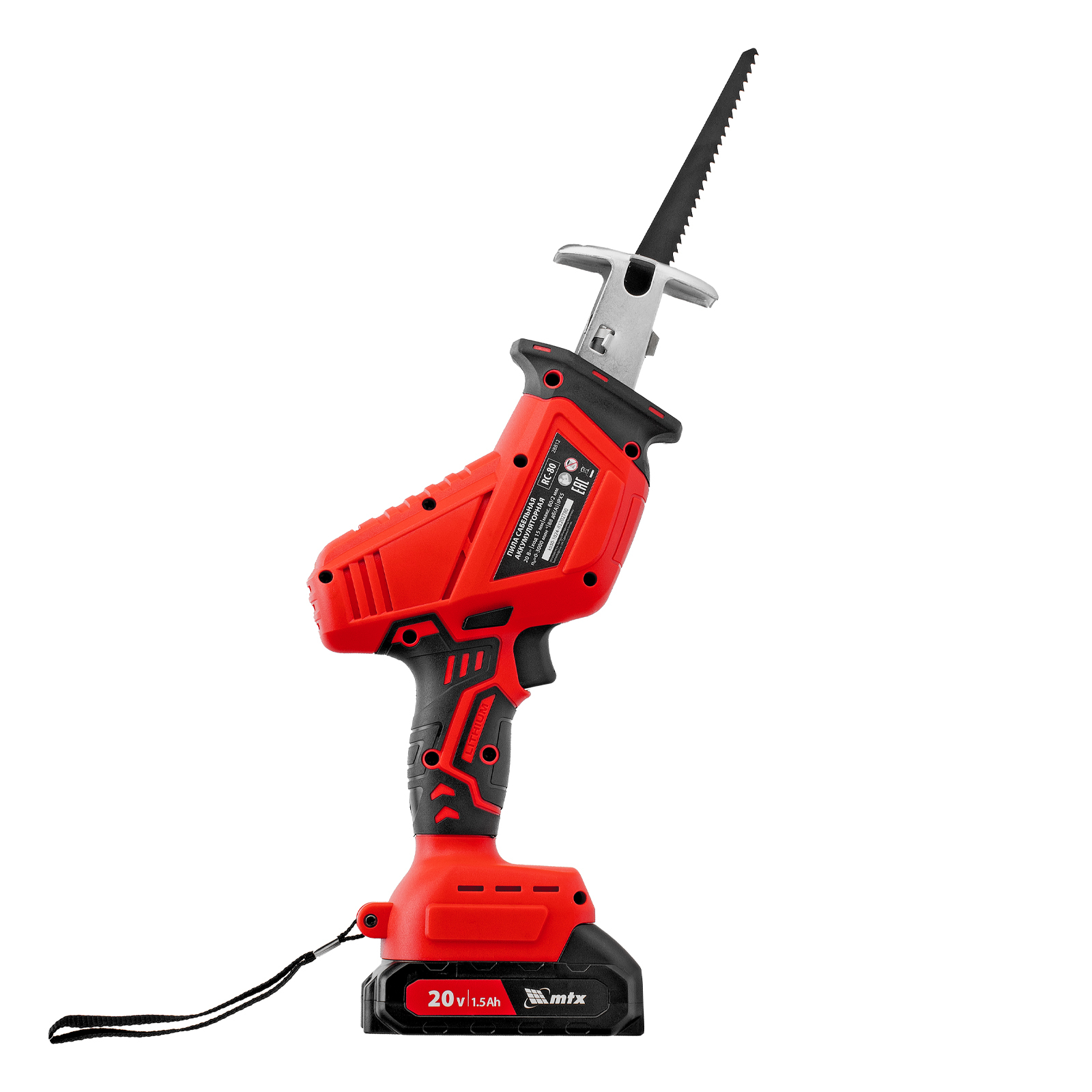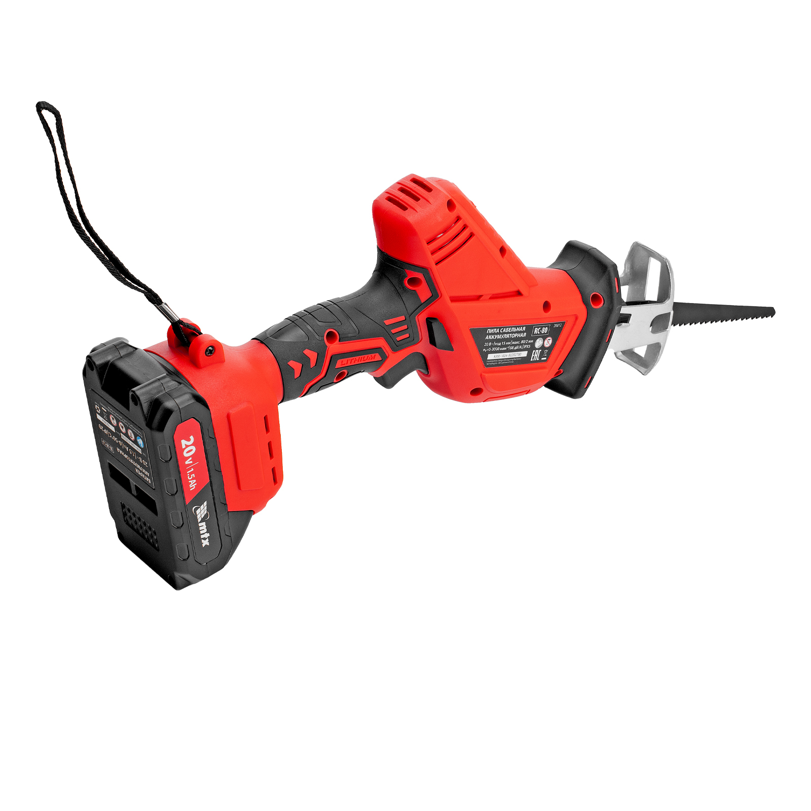 Пила сабельная аккумуляторная RС-80, Li-Ion, 20 В MTX