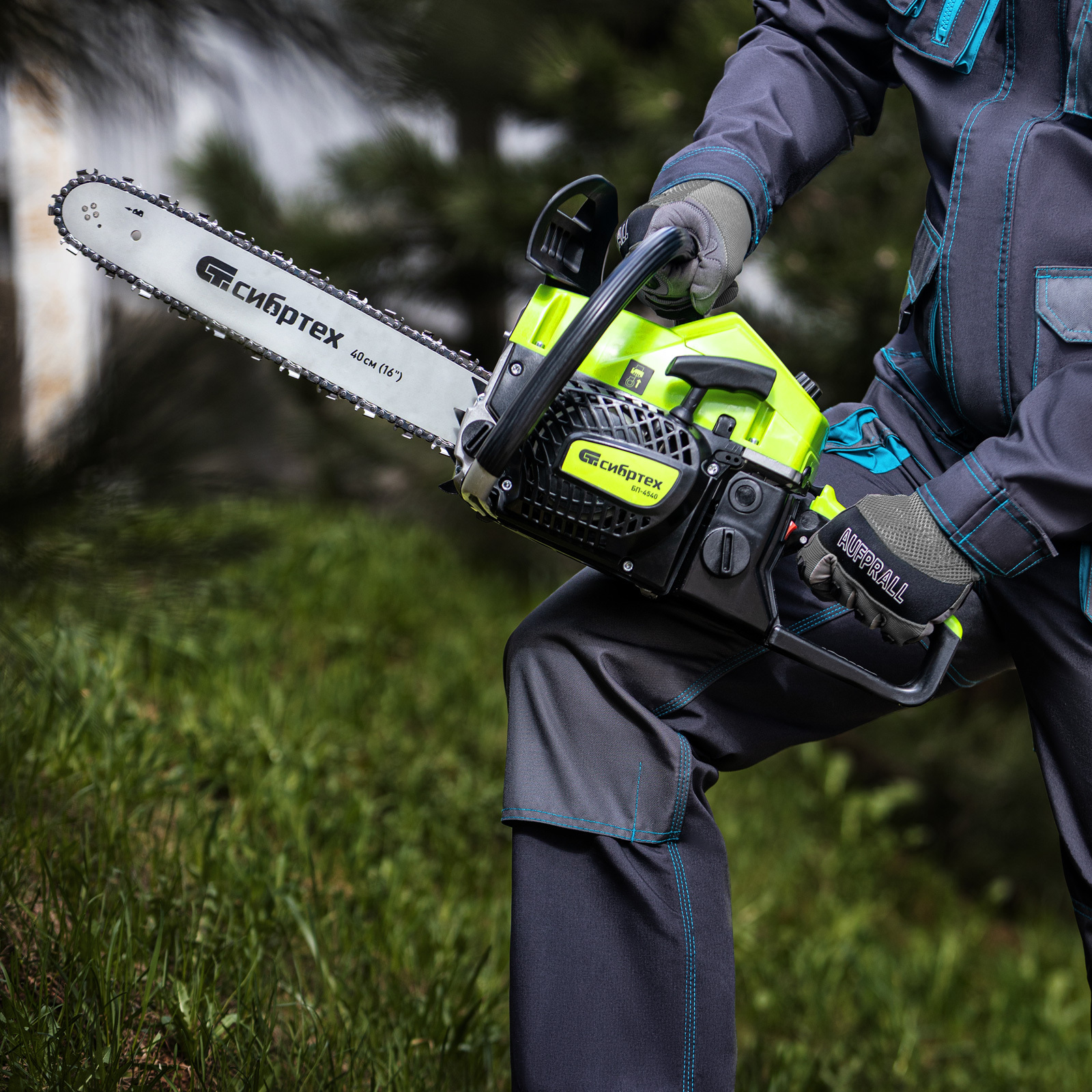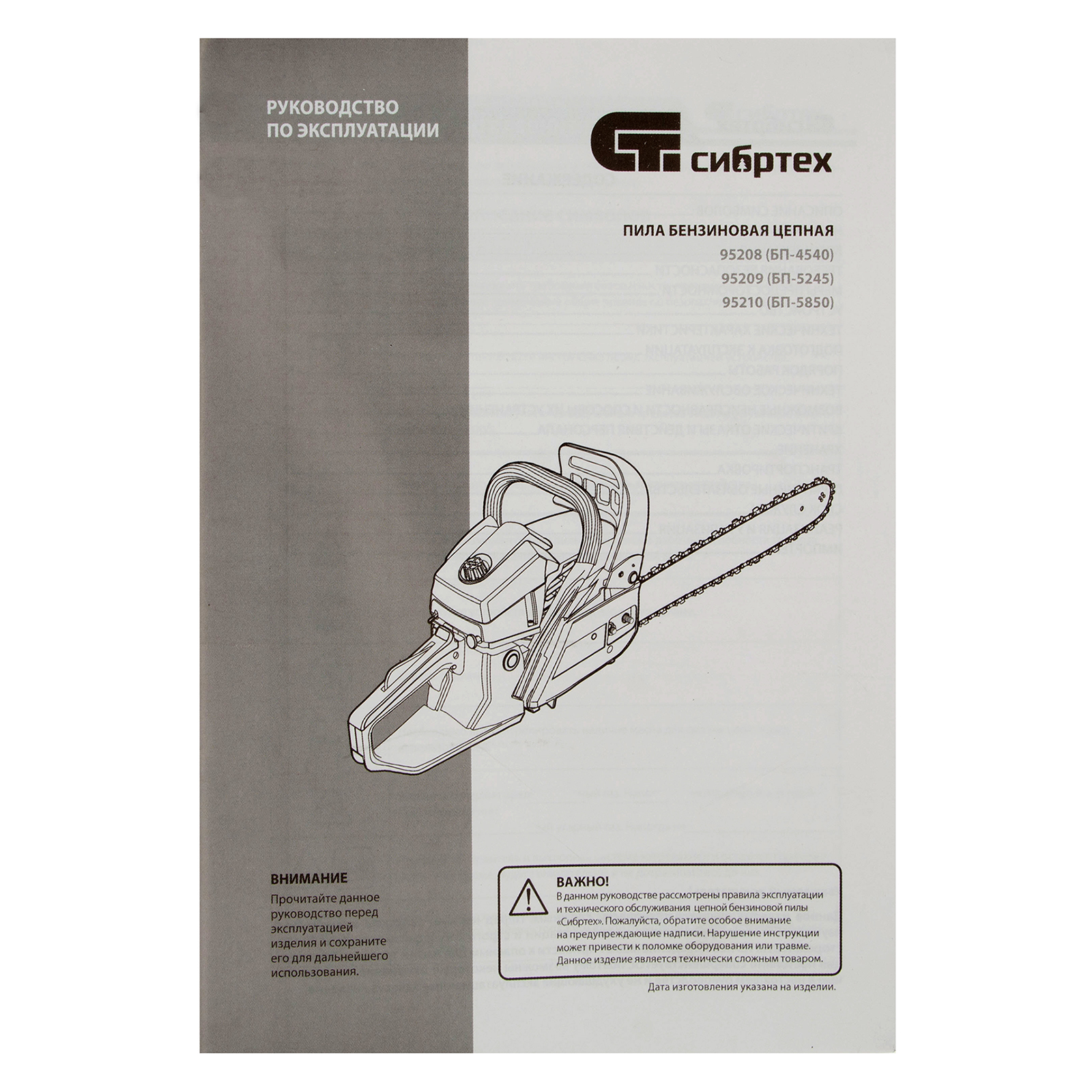 Пила цепная бензиновая Сибртех БП-4540 95208 с двухтактным двигателем объемом 45 см3 и мощностью 2,8 л.с предназначена для распиловки древесины различных пород, заготовки дров, спиливания веток и крупных сучков. Пригодится во время ремонта, строительства, благоустройства садового участка и при выполнении бытовых задач. Мощный и экономичный двигатель в сочетании с качественной шиной длиной 40 см (цепь с 64 звеньями с шагом 0,325 дюйма и шириной паза 1,5 мм) позволяют достичь наилучших результатов да.