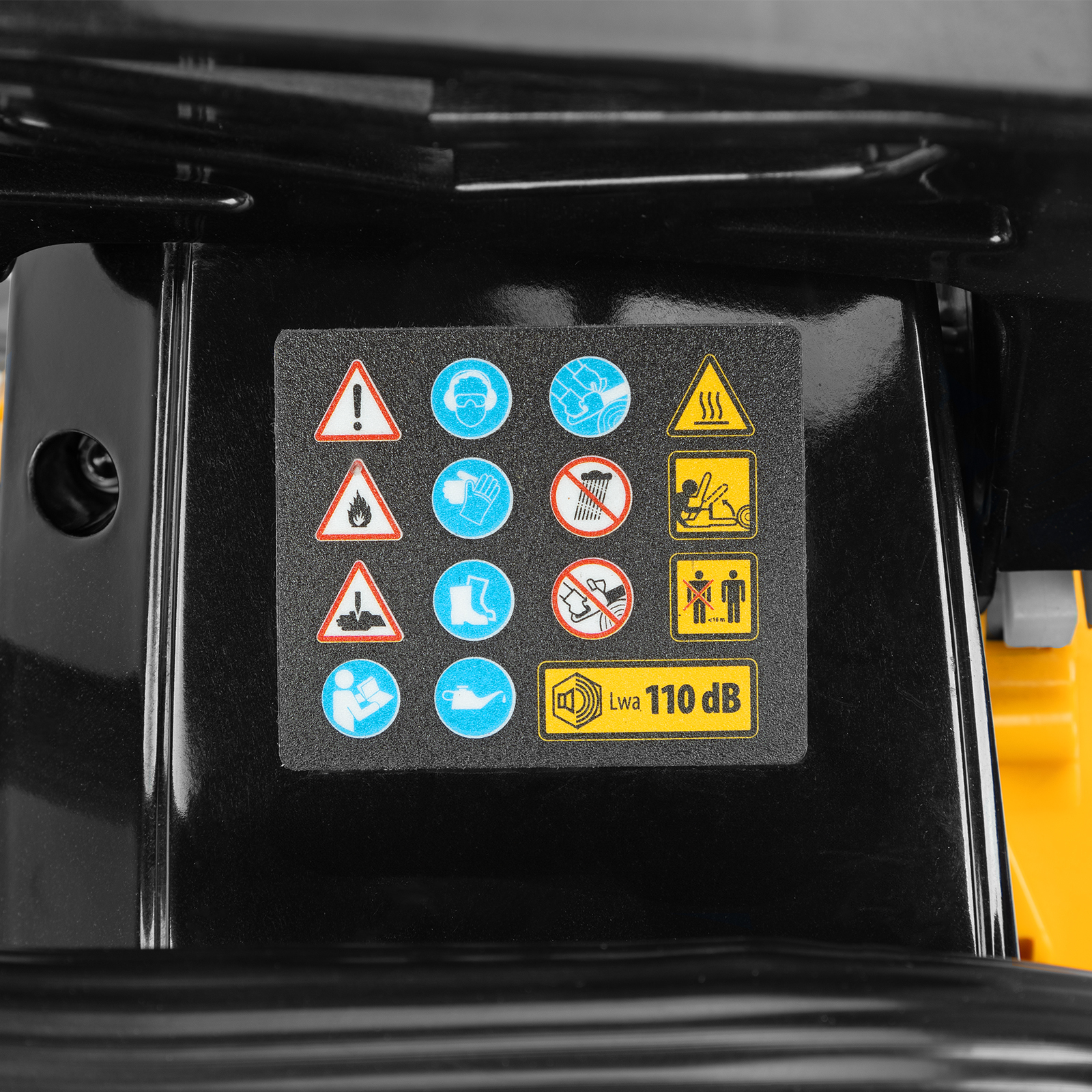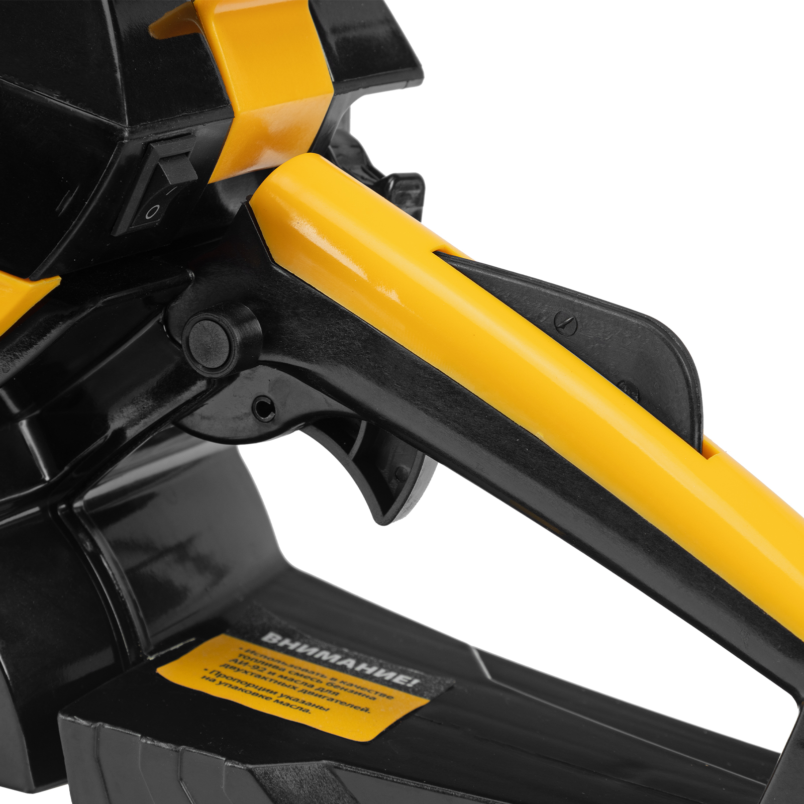 - Безопасность пользователя — усиленный щиток и автоматический тормоз цепи уменьшают риск получения травм при отскоке пилы, также предусмотрена защита от случайного пуска.
