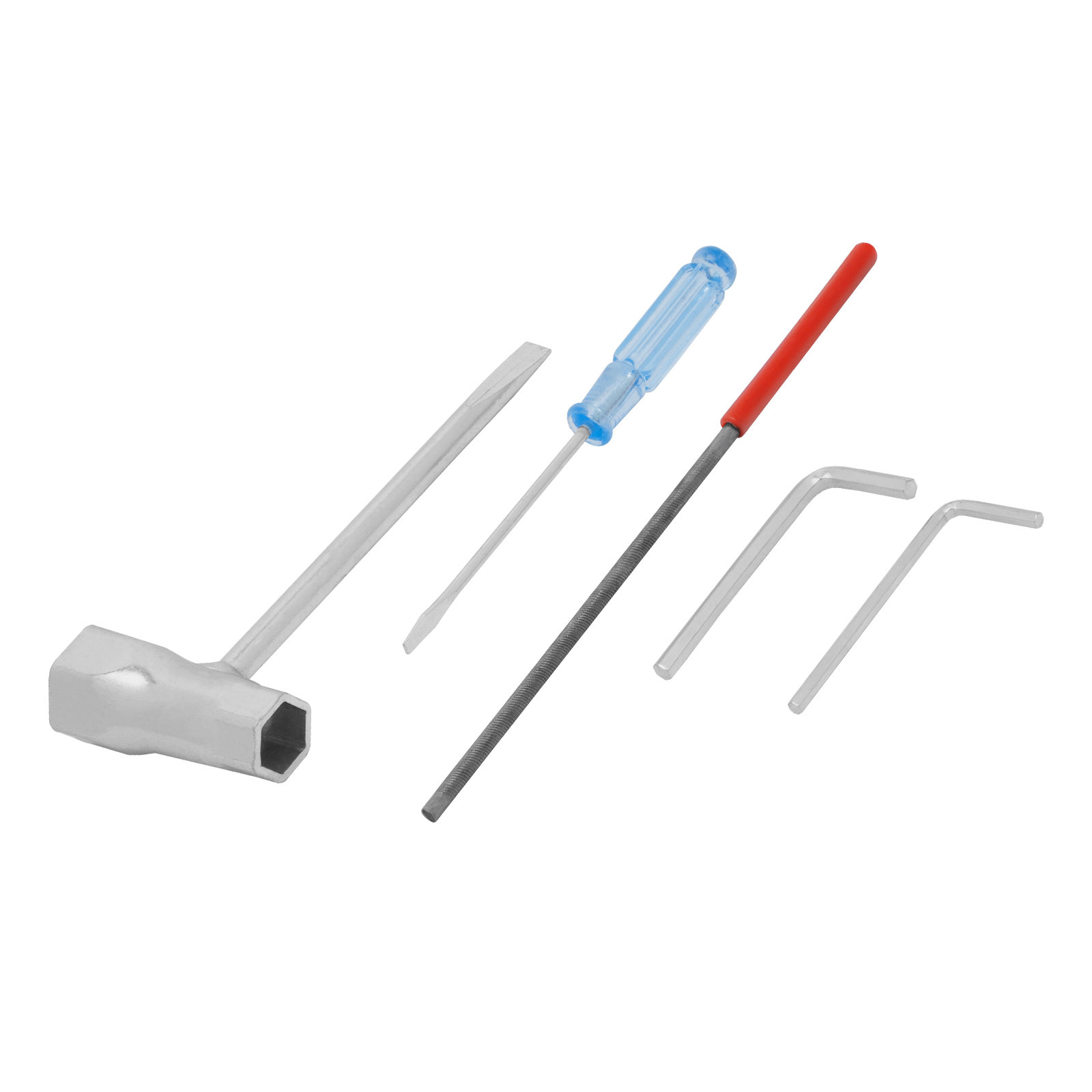 - Полный комплект поставки — инструменты для обслуживания, свечной ключ и емкость для приготовления топливной смеси прилагаются к пиле.