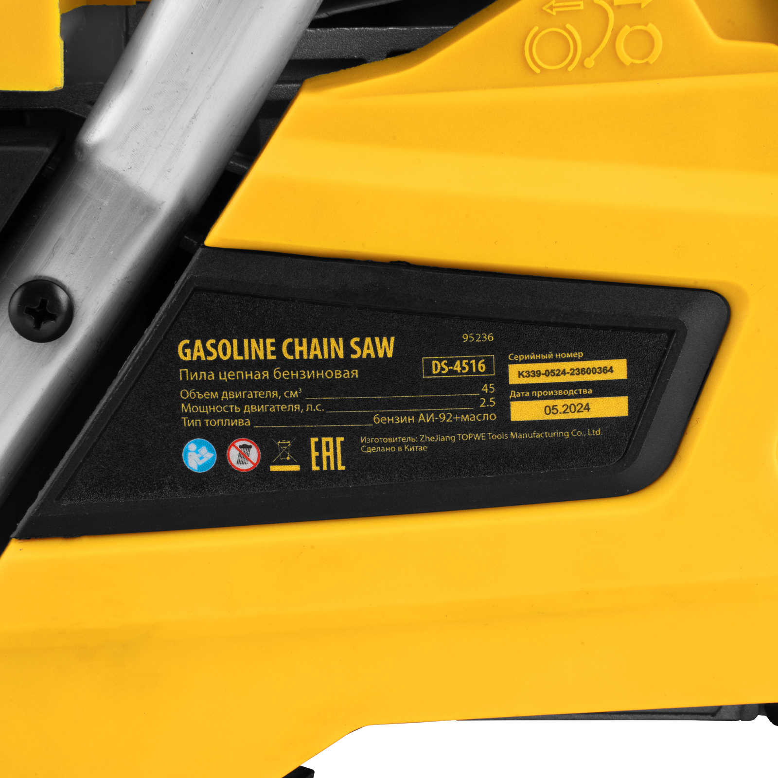 Пила цепная бензиновая DS-4516, шина 40 см, 45 см3, 2,5 л.с, шаг 0,325, паз 1,5 мм, 64 звена Denzel