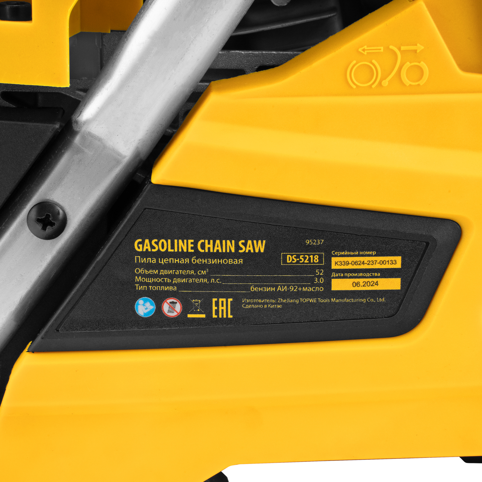 Пила цепная бензиновая DS-5218, шина 45 см, 52 см3, 3 л.с, шаг 0,325, паз 1,5 мм, 72 звена Denzel