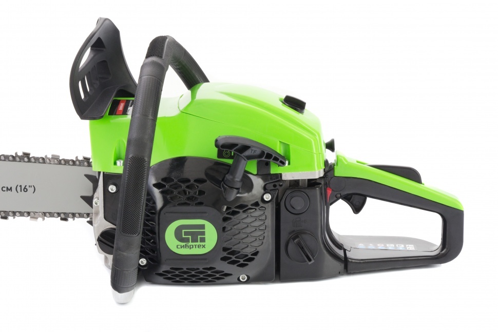Цепная бензиновая пила Сибртех ПЦБ-4540 95202 мощностью 2,9 л.с., с двигателем объемом 45 см3, комплектуется шиной длиной 40 см с 64 звеньями (шаг 0,325″, паз 1,5 мм). Предназначена для облагораживания приусадебных участков, валки деревьев, распиловки бревен, заготовки дров, подравнивании насаждений в саду, подпиливания веток. Работает на смеси бензина и масла (дозатор для ее приготовления входит в комплект поставки). Оптимальна для бытового использования.