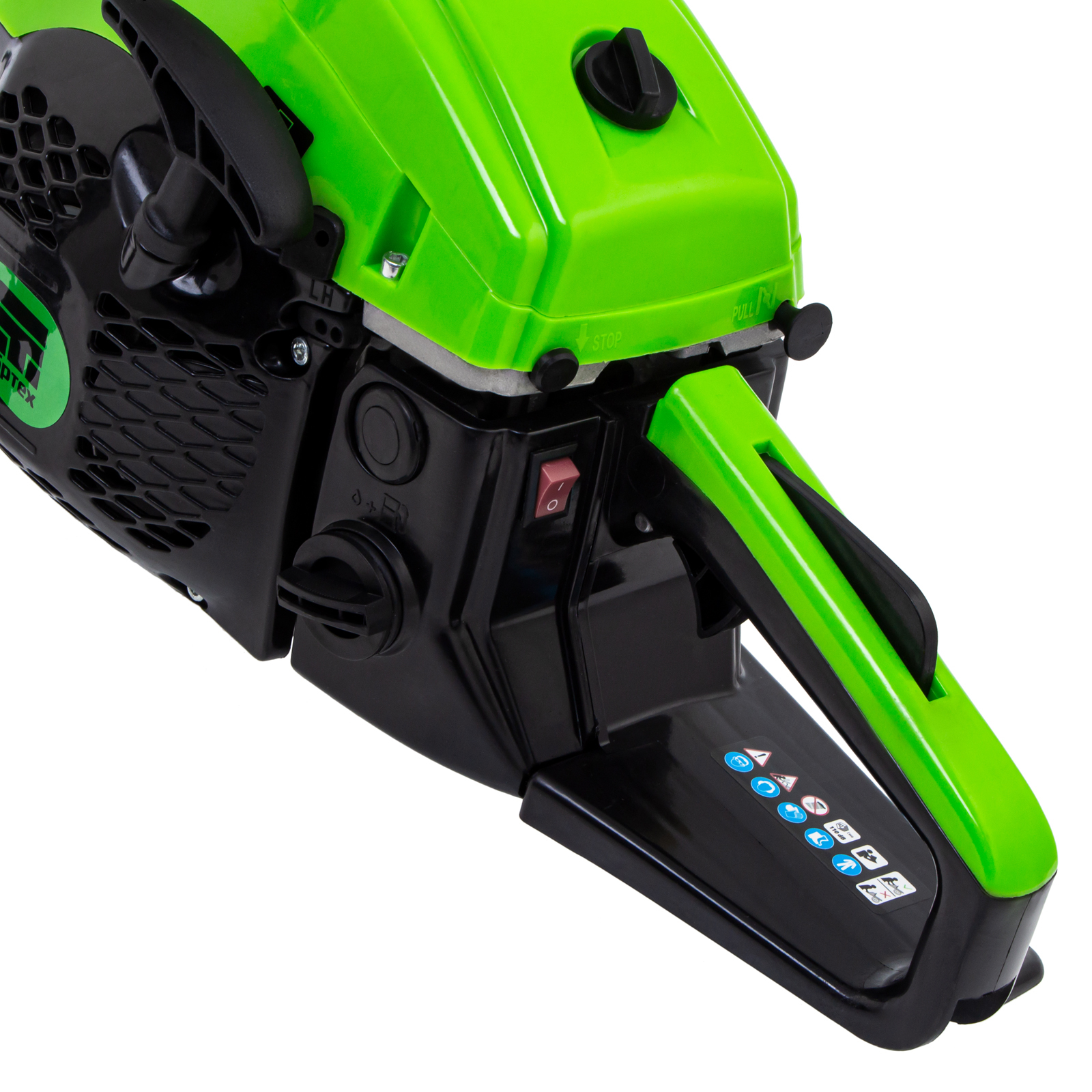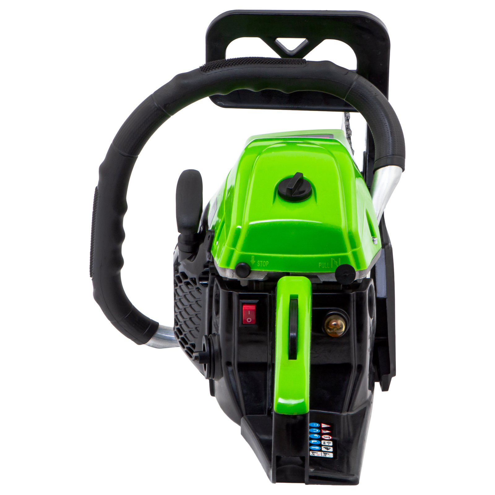 Пила цепная бензиновая Сибртех ПЦБ-5245 95204 мощностью 3,4 л.с. комплектуется шиной длиной 45 см с 72 звеньями (шаг 0,325″, паз 1,5 мм). Рассчитана на облагораживание приусадебных участков, валку деревьев, распиловку бревен, заготовку дров, подравнивание насаждений в саду, подпиливание веток. Оптимальна для бытового использования. Длина шины увеличена до 45 см, это позволяет легче справиться с массивными ветками и древесиной разных пород. Чехол для шины обеспечивает ее безопасное хранение и транспортировку. Для заправки двигателя требуется топливная смесь, а в комплект поставки включен дозатор для ее приготовления.