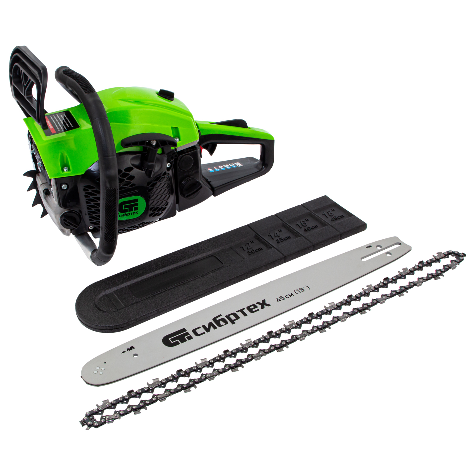 Пила цепная бензиновая ПЦБ-5245, шина 45 см, 52 см3, 3.4 л.с, шаг 0.325, паз 1.5 мм, 72 звена Сибртех
