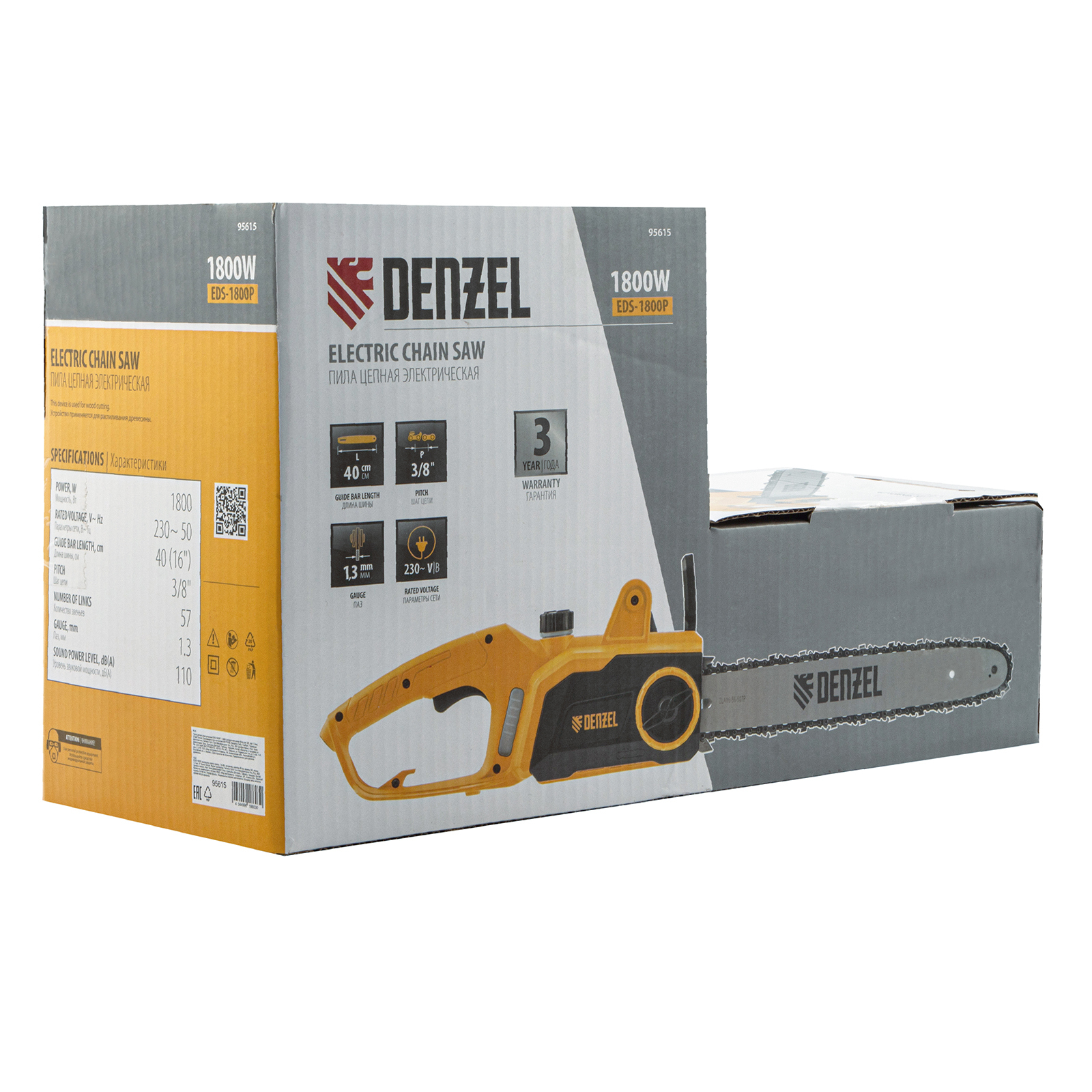 Пила цепная электрическая EDS-1800P, 1.8 кВт,поперечная, шина 40 см, шаг 3/8, паз 1.3 мм, 57 звеньев Denzel