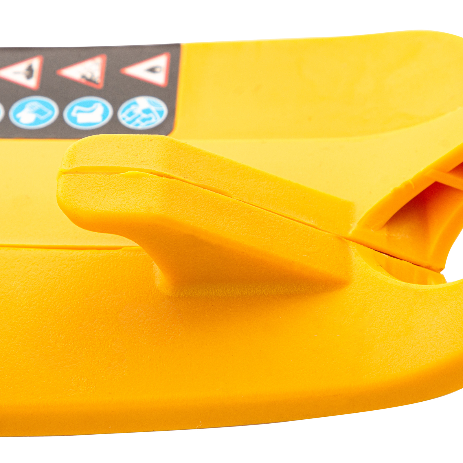 - Удобное использование — зубчатый упор не соскальзывает с древесины, надежно фиксируя пилу и уменьшая нагрузку на руки пользователя, что особенно удобно для работы с крупными бревнами или деревьями.