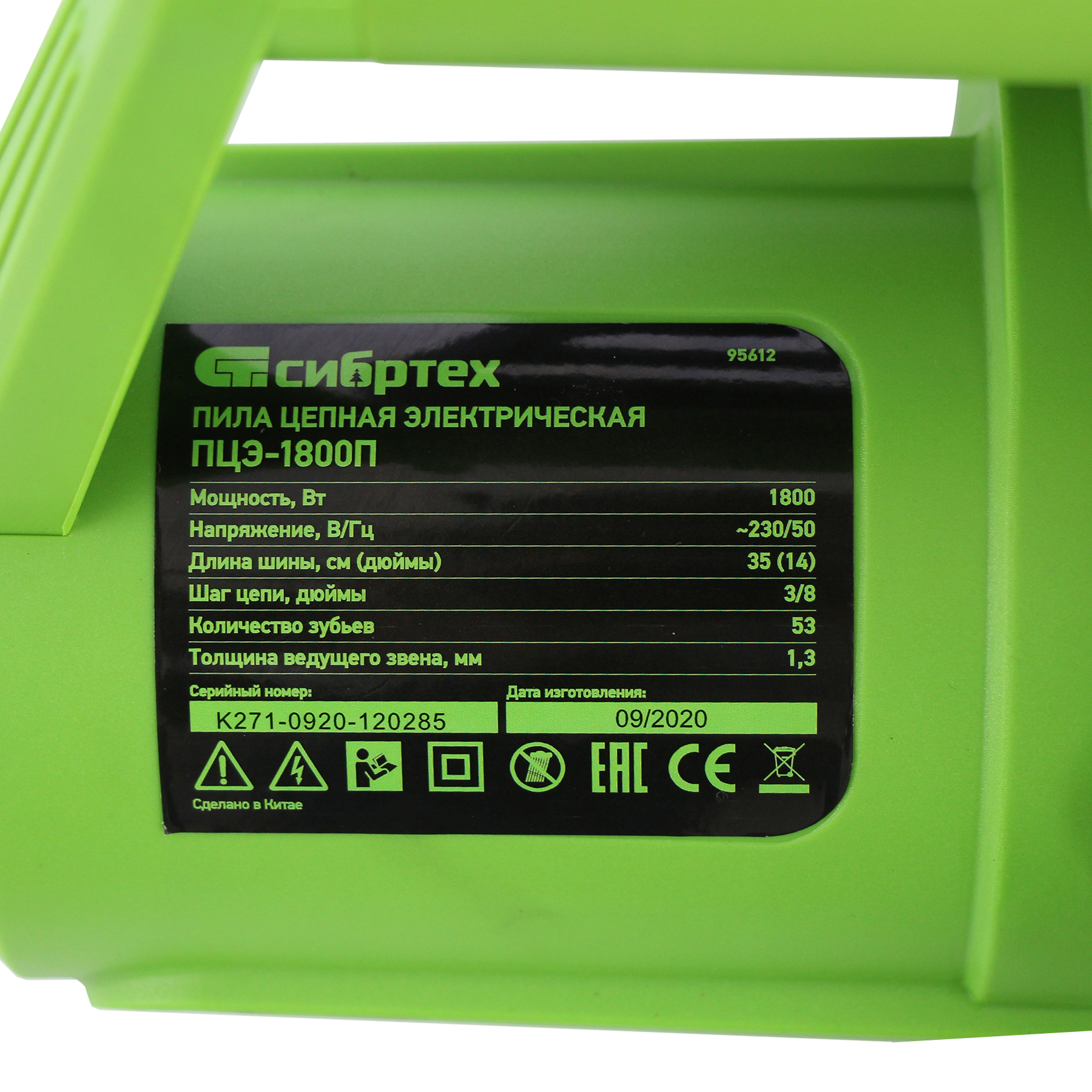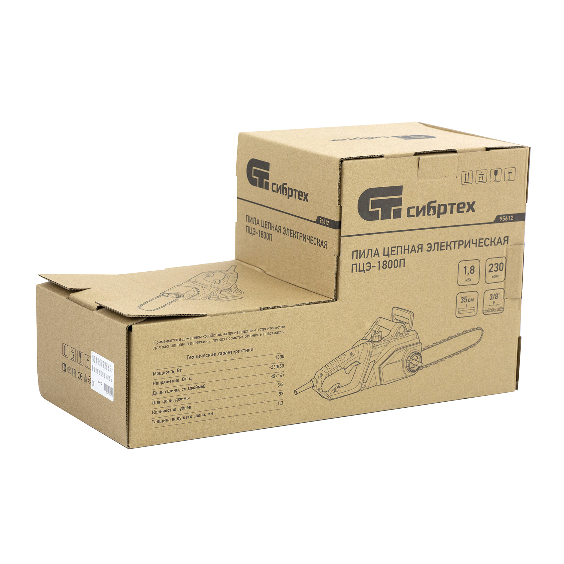 Пила цепная электрическая ПЦЭ-1800П с поперечным двигателем, 1.8 кВт, 14'' (35 см) Сибртех