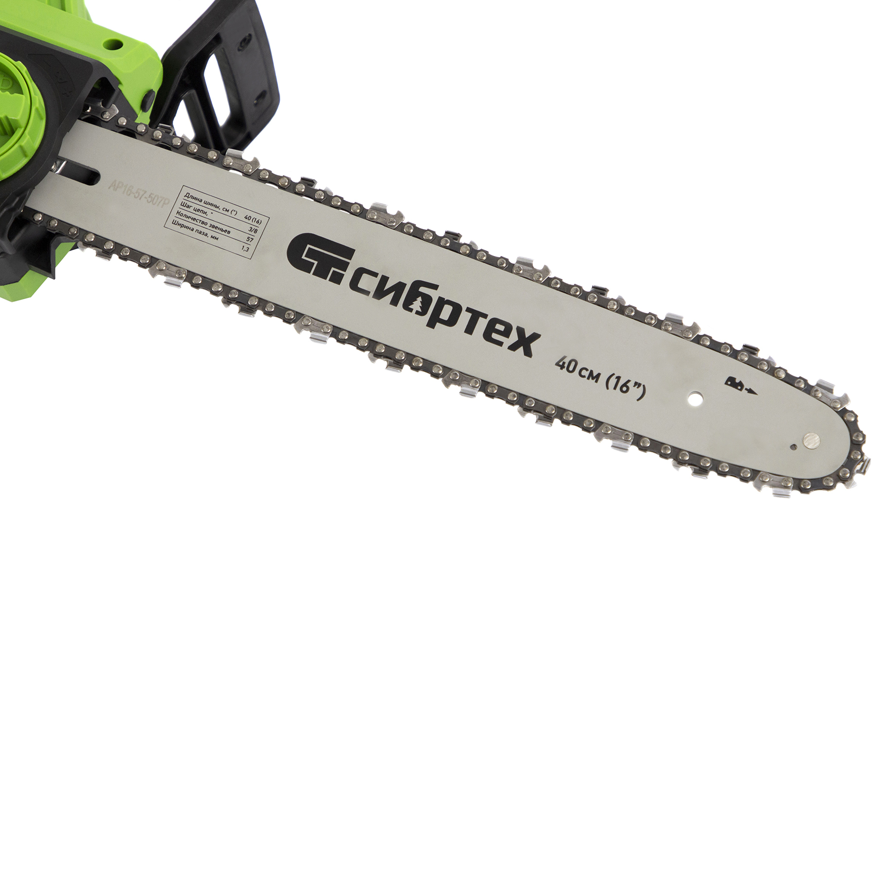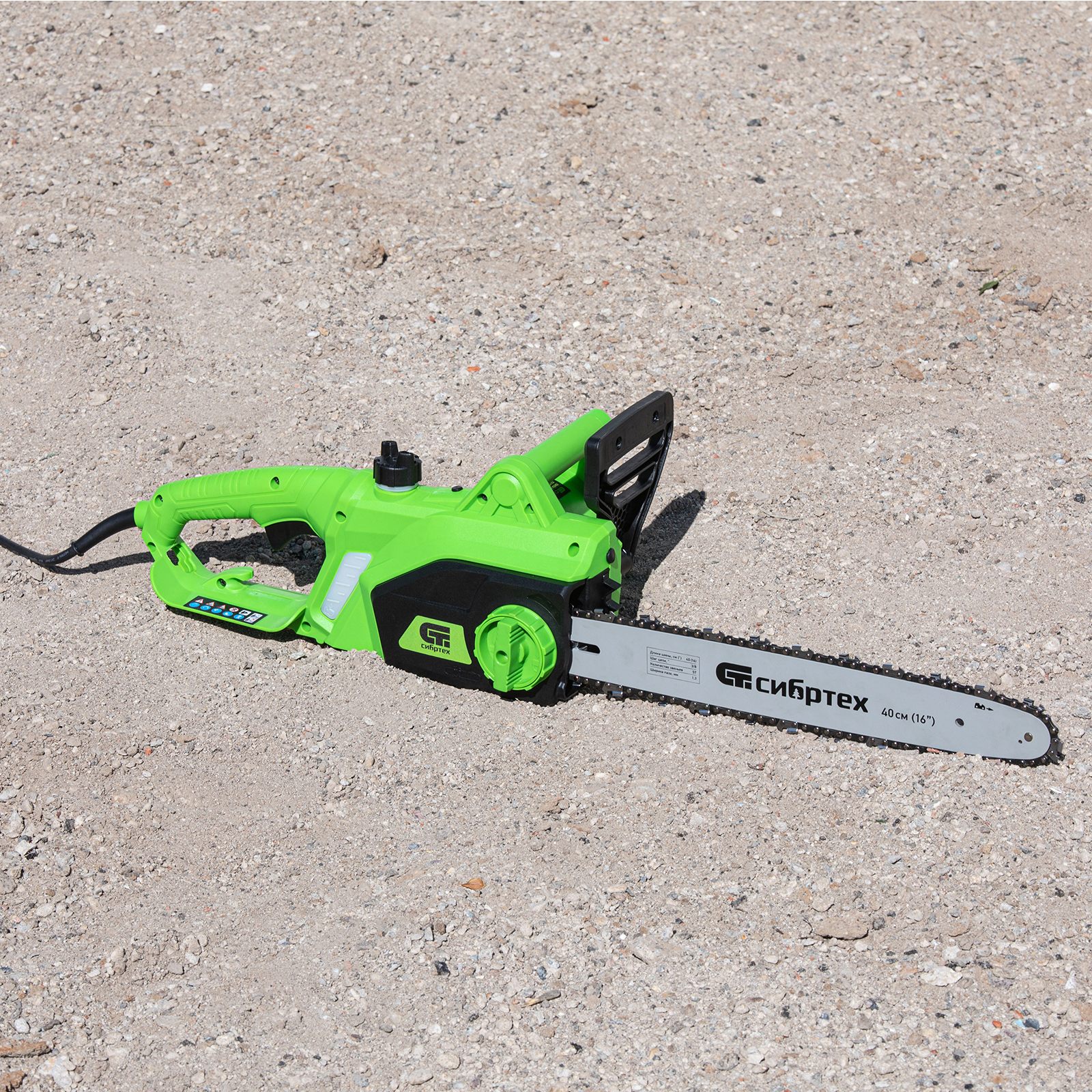 Электрическая цепная пила Сибртех ПЦЭ-2000П 95613 мощностью 2,0 кВт, с поперечным двигателем, комплектуется шиной длиной 16'' (40 см). Скорость движения цепи 13,5 м/с позволяет эффективно справляться с распилом деревянных заготовок, благоустройством дачного участка, ремонтом и частным строительством.,Пила абсолютно экологична, потому что не производит выхлопов в окружающую среду. Электродвигатель экономит время на техническое обслуживание — не нужно готовить топливную смесь и беспокоиться о ее количестве в баке. Инструмент отличается низким уровнем шума по сравнению с бензиновыми моделями, поэтому мастеру будет комфортно работать как на открытых участках, так и в помещениях.