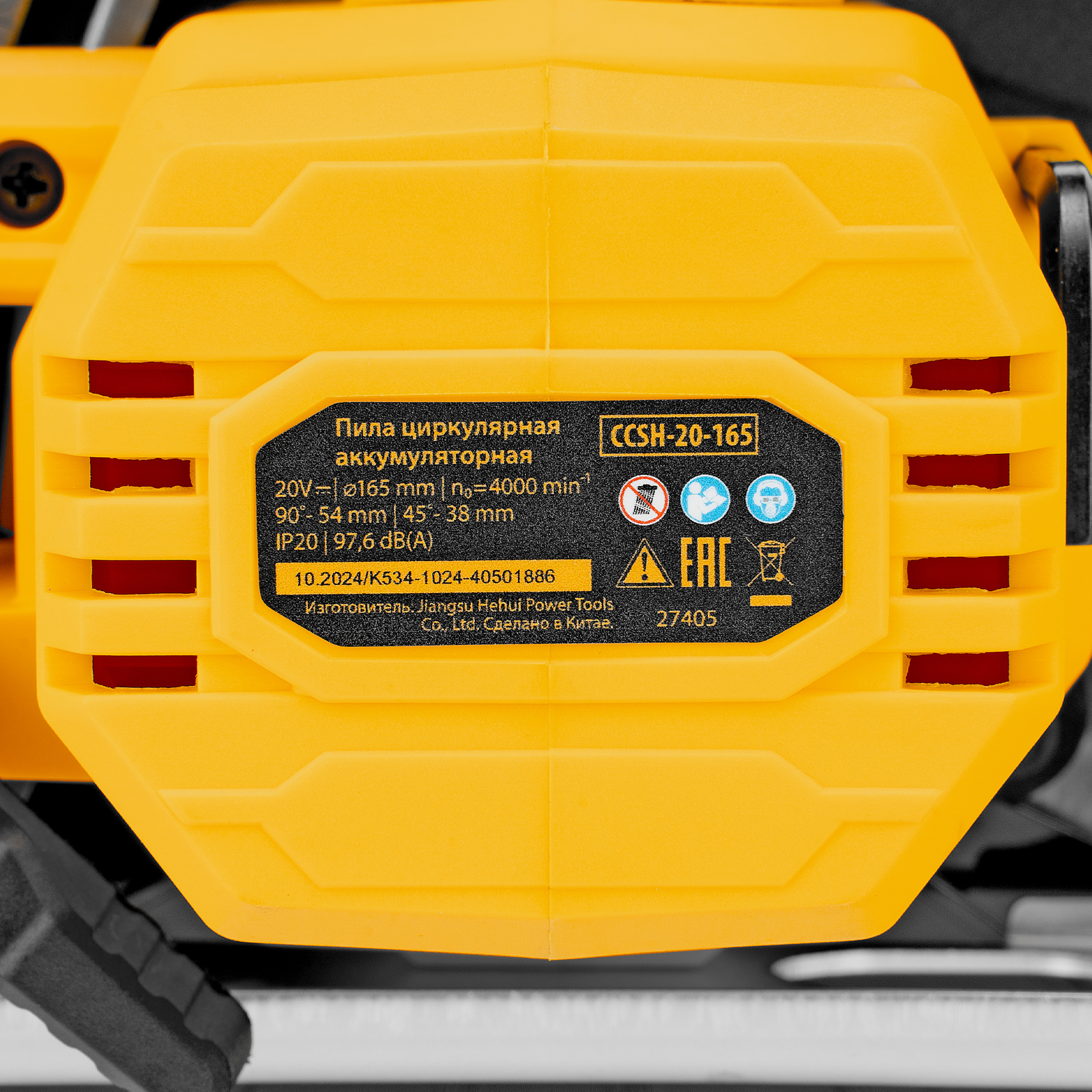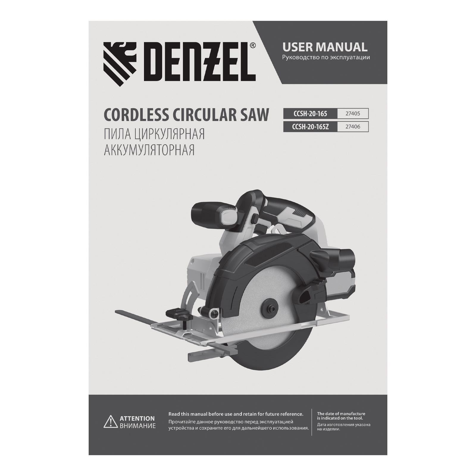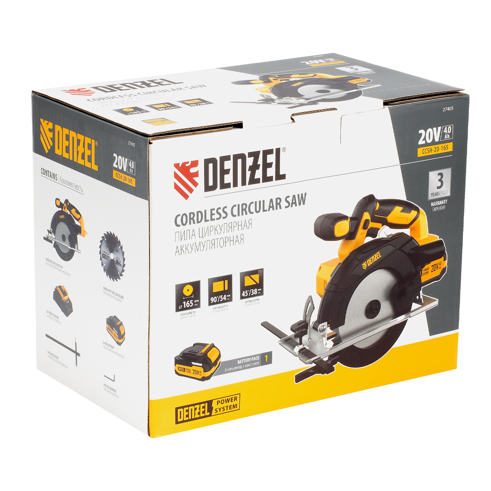 Пила циркулярная аккумуляторная CCSH-20-165, 165 мм, Li-Ion, 20 В// Denzel