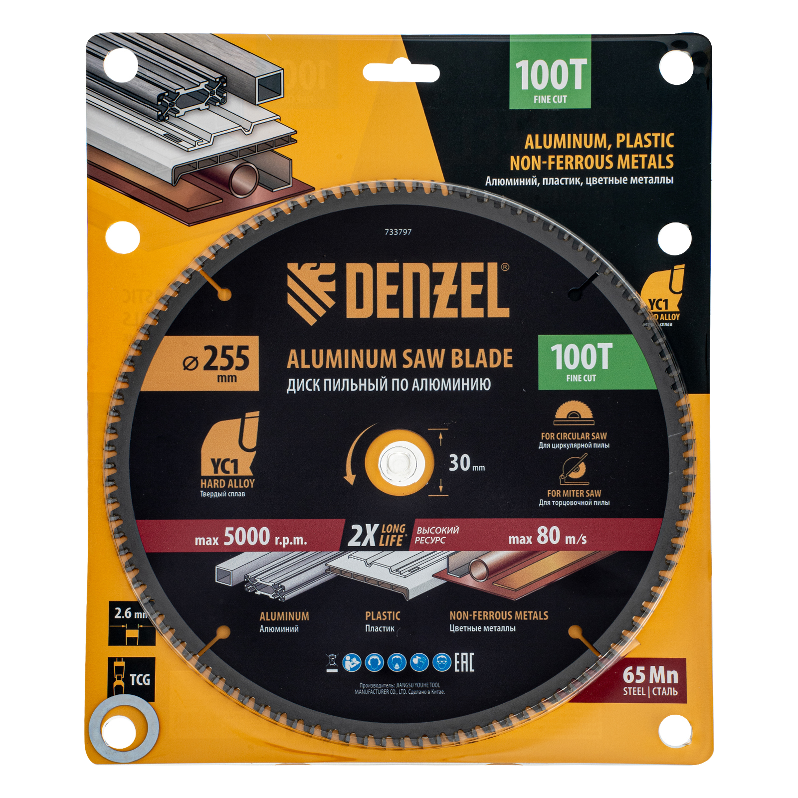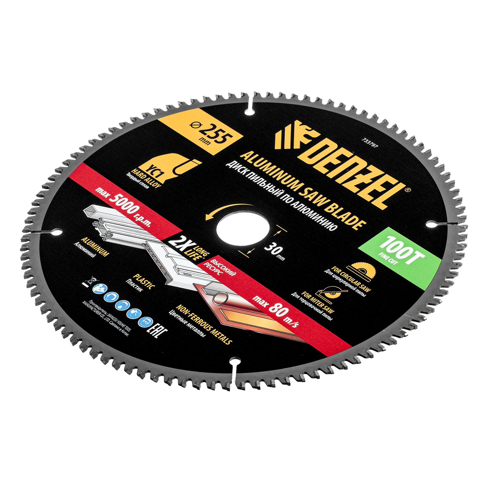 Пильный диск по алюминию ф255 х 30 мм, 100 зубьев Denzel