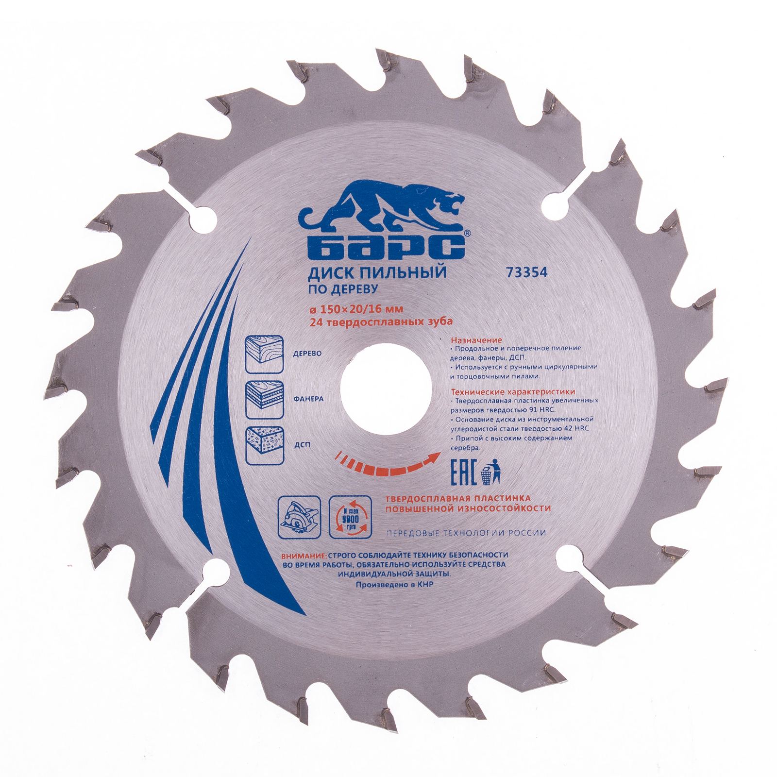 Пильный диск по дереву 150 x 20/16 мм, 24 твердосплавных зуба Барс