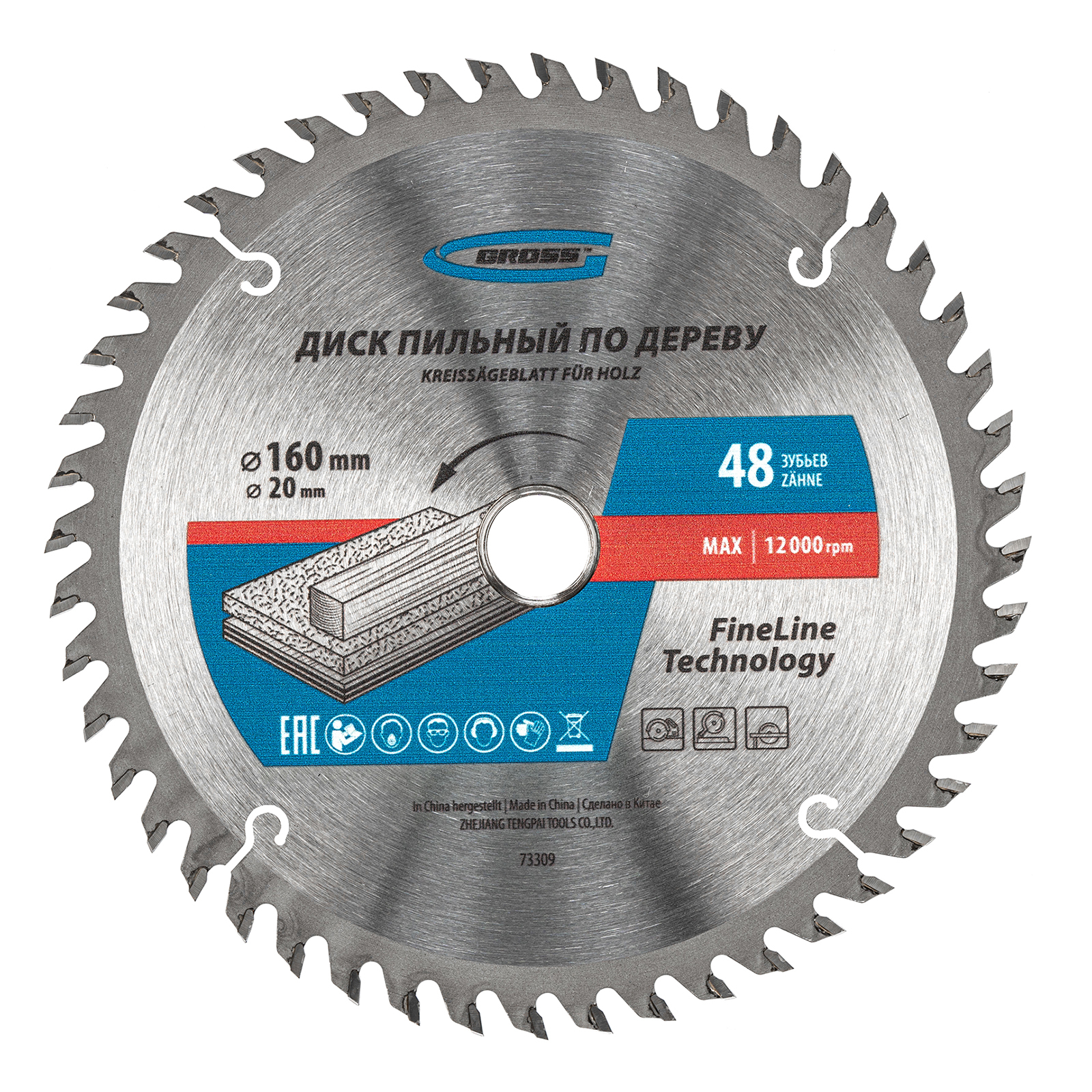 - Высокое качество работ — 48 мелких зубьев и режущие кромки, прошедшие многоступенчатую автоматическую заточку, обеспечивают точный и чистый рез материалов.