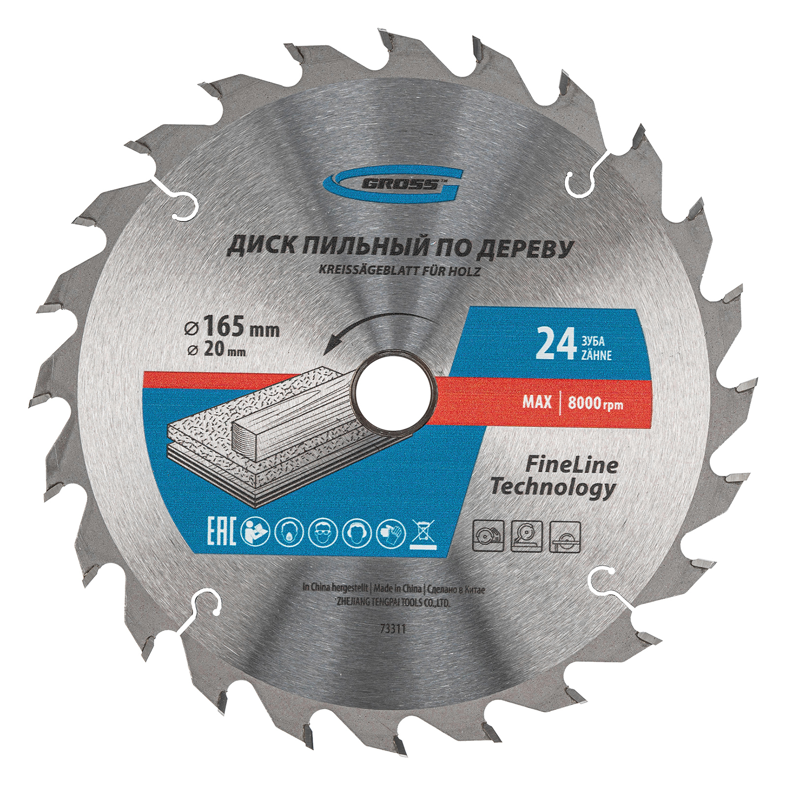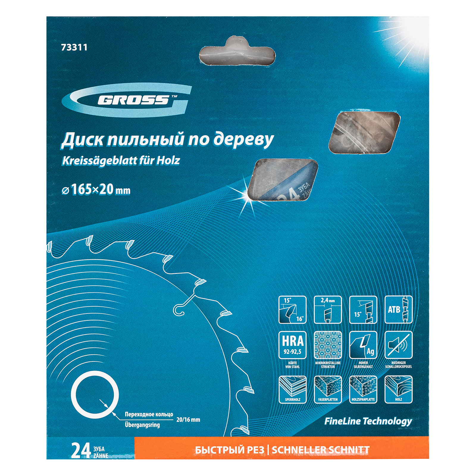 Пильный диск по дереву 165 x 20/16 x 24Т Gross