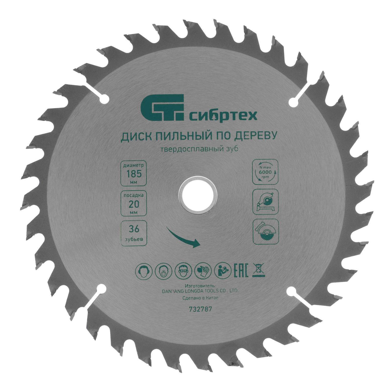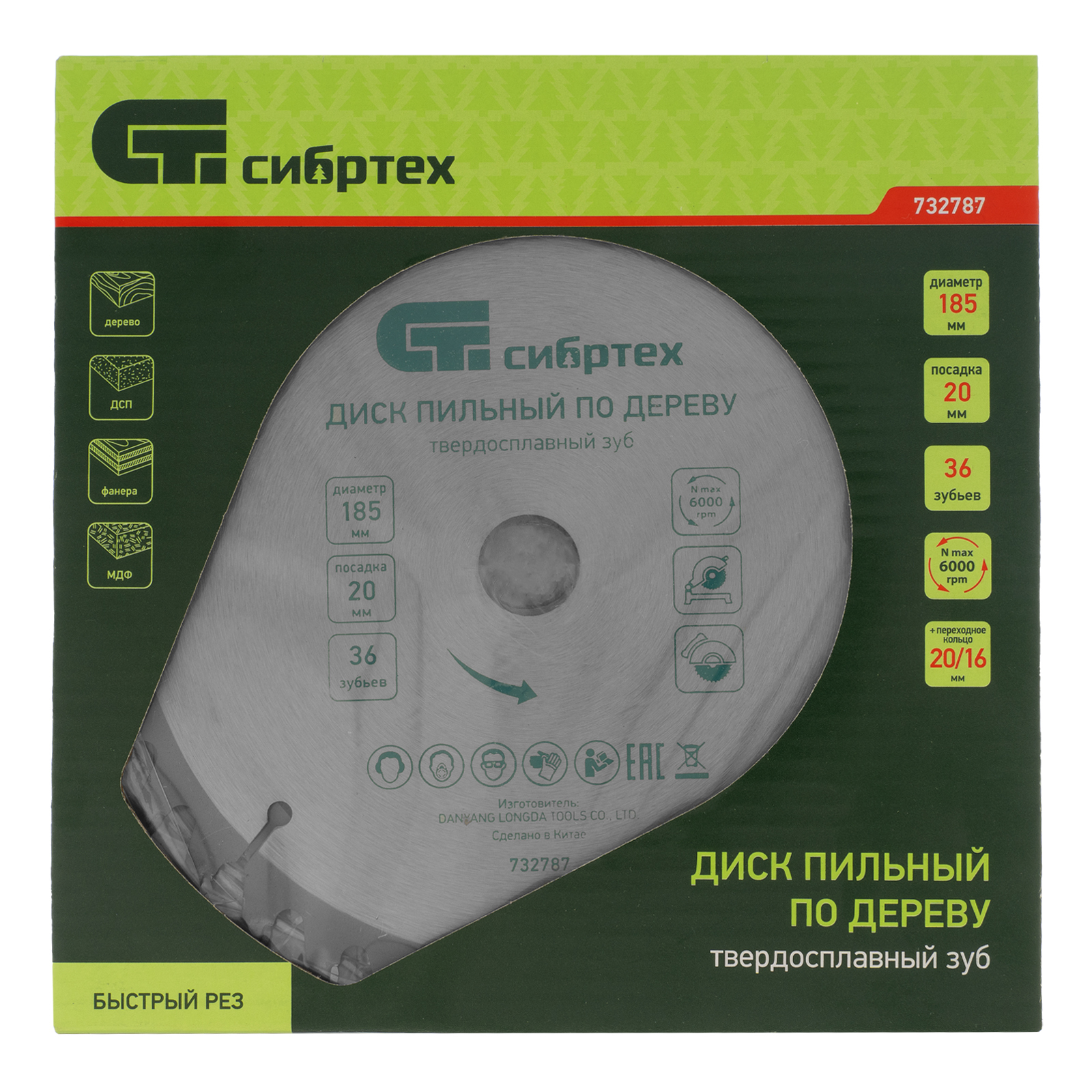 Пильный диск по дереву, 185 х 20 мм, 36 зубьев, кольцо 16/20 Сибртех
